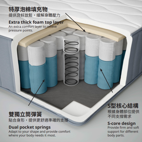 VÅGSTRANDA - pocket sprung mattress, super firm/light blue, 150x200 cm | IKEA Taiwan Online - PE884902_S4