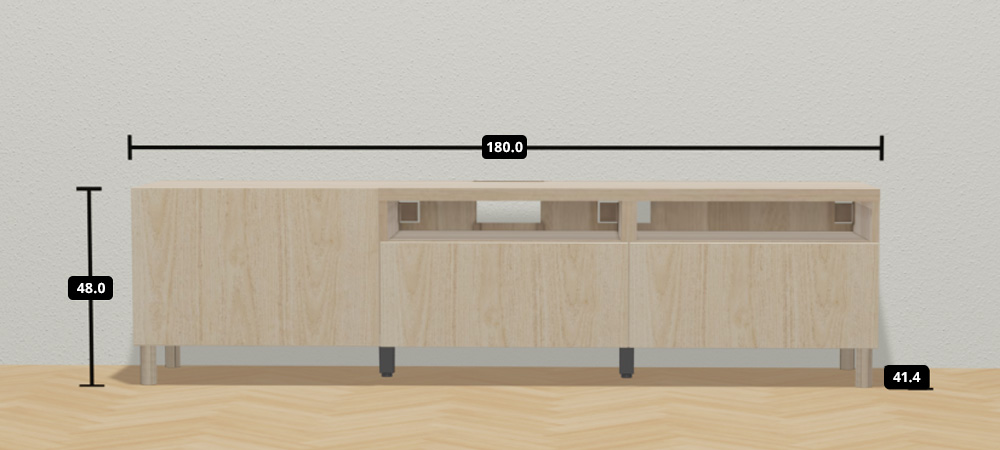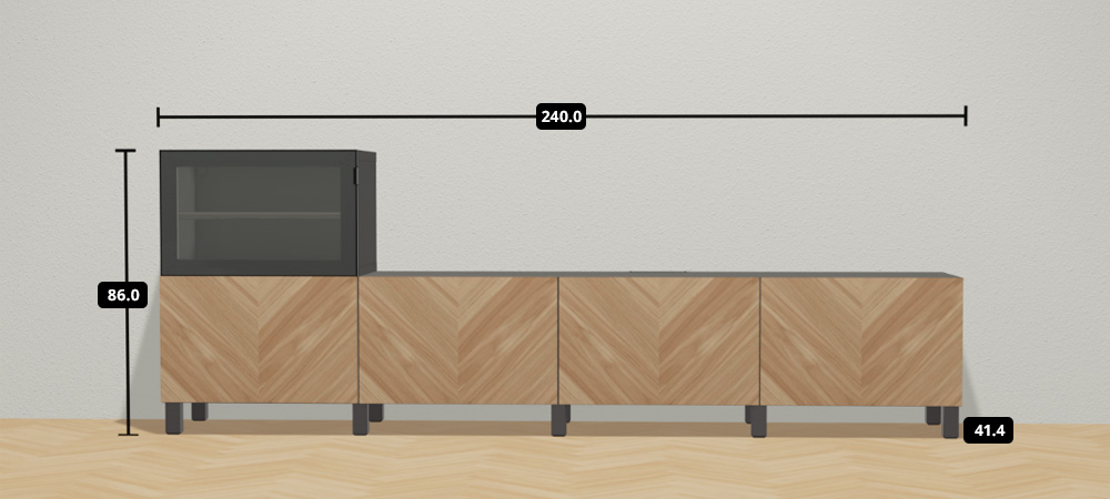 The BESTÅ TV storage system combines style and functionality, bringing organization and comfort to your home. Whether you're setting up a large TV or other media devices, BESTÅ handles it effortlessly. The storage doors help keep clutter out of sight, creating a well-designed space that looks great both open and closed.