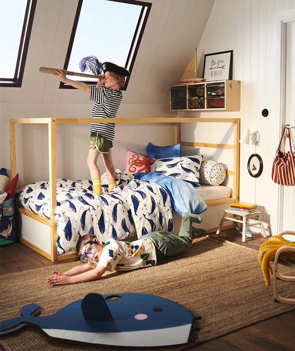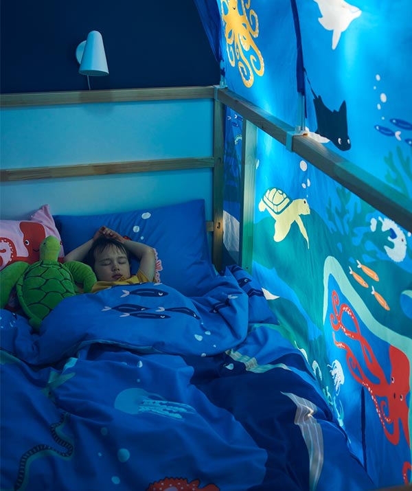 The BLÅVINGAD collection is packed to the brim with ocean-inspired textiles including towels and cushions. In shades of blue and green, these soft accessories bring the ocean into your kids’ space.