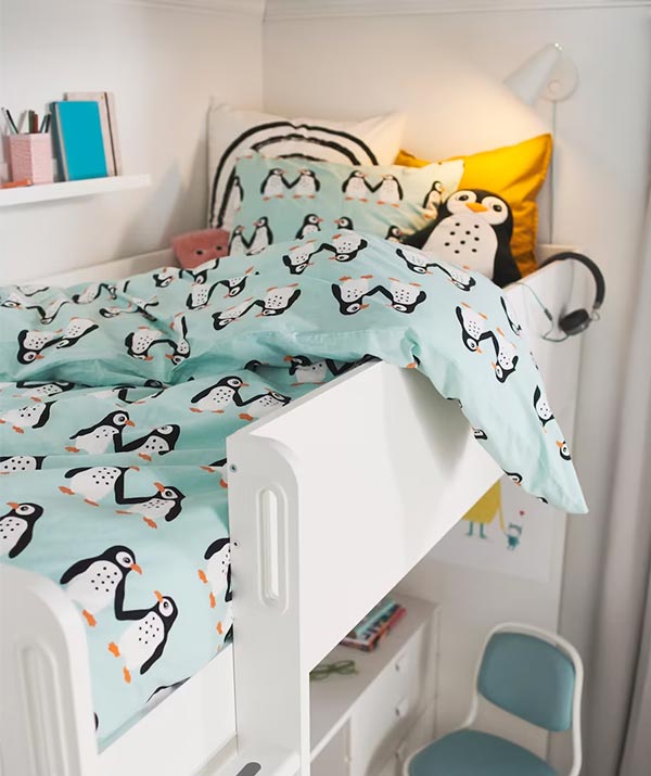 The BLÅVINGAD collection includes bed linen bursting with kids’ favourite marine creatures – turtles, penguins, and the majestic blue whale. Made from 100% cotton or cotton blends, your little one is guaranteed a restful slumber.