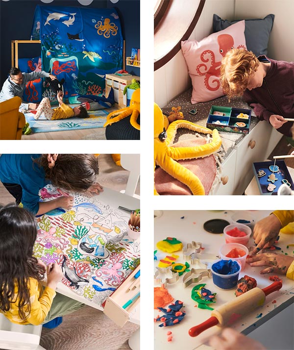 At IKEA, we believe that play is critical for kids’ development and growth. The collection includes a submarine playset, cuddly soft toys and arts and crafts that will encourage curious little ones to discover the world.