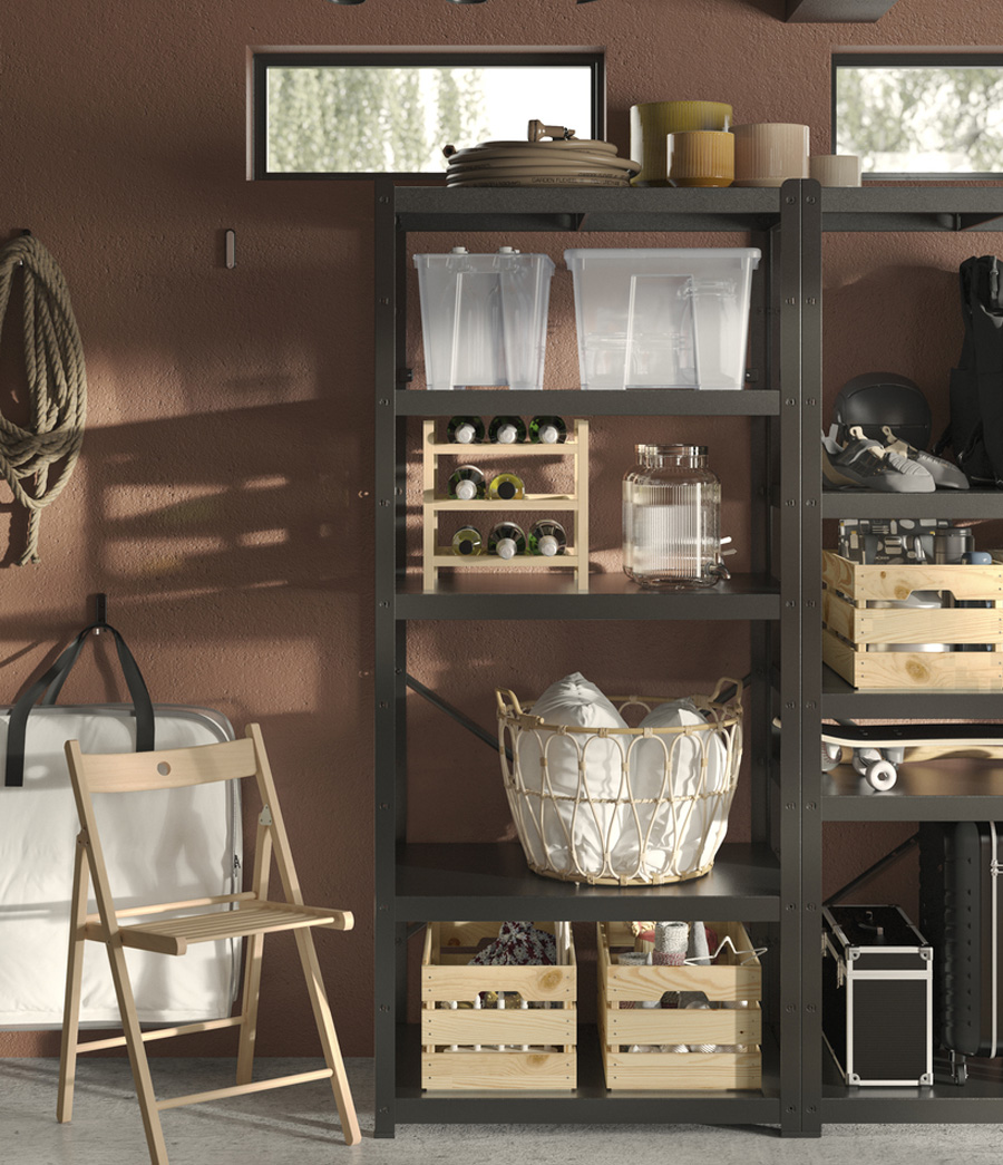 This furniture must be fixed to the wall with the enclosed wall fastener. Different wall materials require different types of fixing devices. Use fixing devices suitable for the walls in your home, which are sold separately. For higher stability, complete every second section with a cross-brace.
