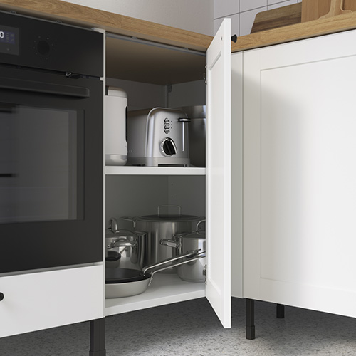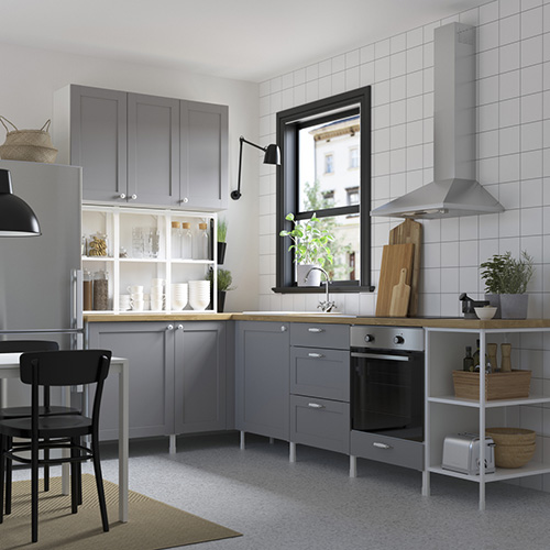 The ENHET cabinets, drawers and metal frames use a wedge dowel that allows you to assemble with just a “click”. ENHET also has a series of door panels and accessories, as you like to choose from.