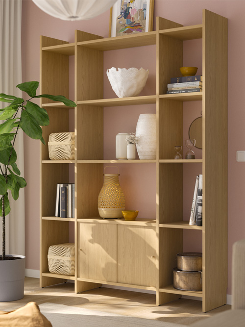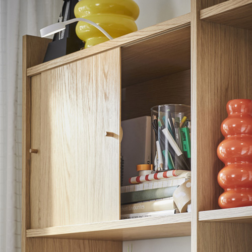 Thanks to its clever design and single-side-wall construction, LÅDMAKARE series adapts to your needs without wasting precious centimetres. The oak finish, tall