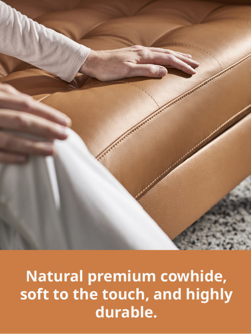 The leather parts are made from natural, high-quality top-grain cowhide, offering a soft touch, high durability, and easy-to-clean properties. Tested natural leather undergoes strict controls for heavy metal content, such as chrome and lead, ensuring safety for you and the environment.