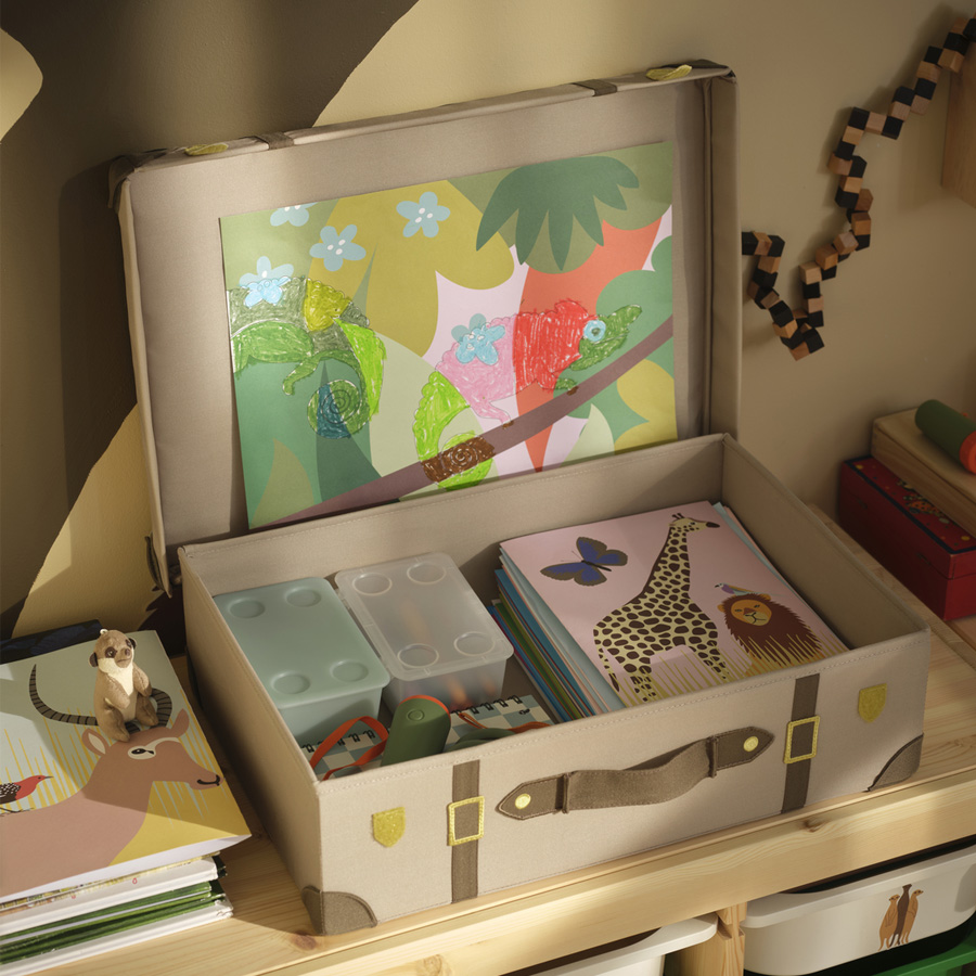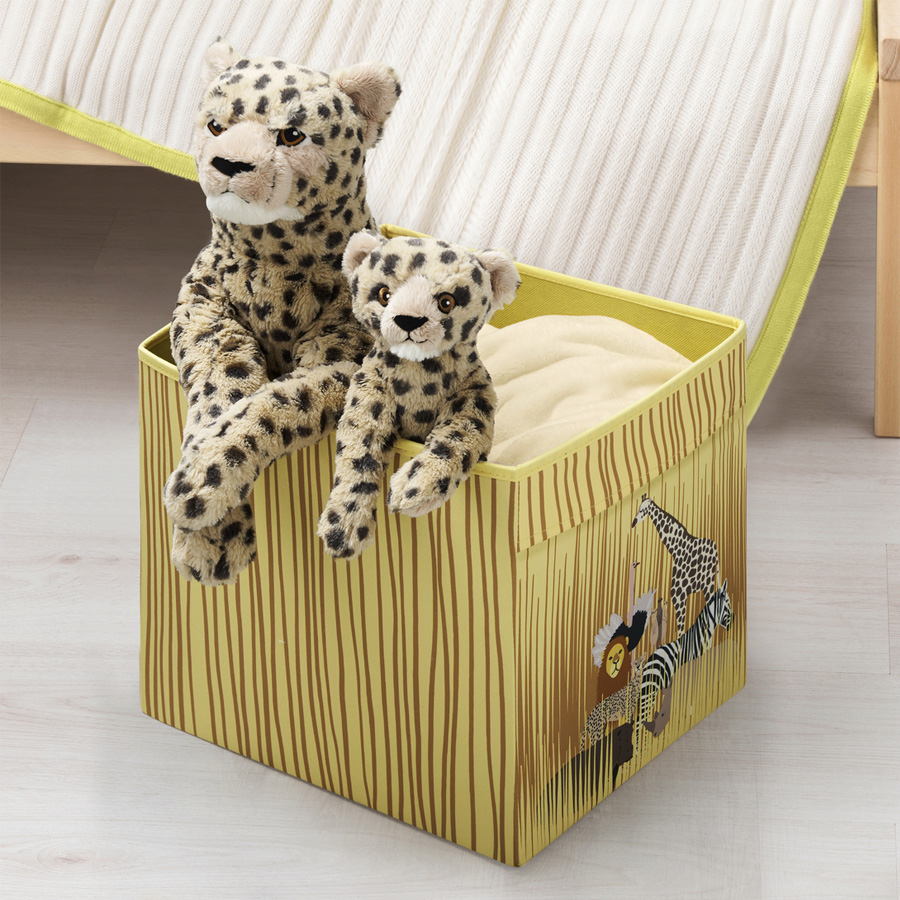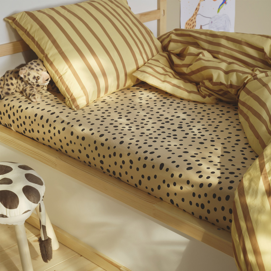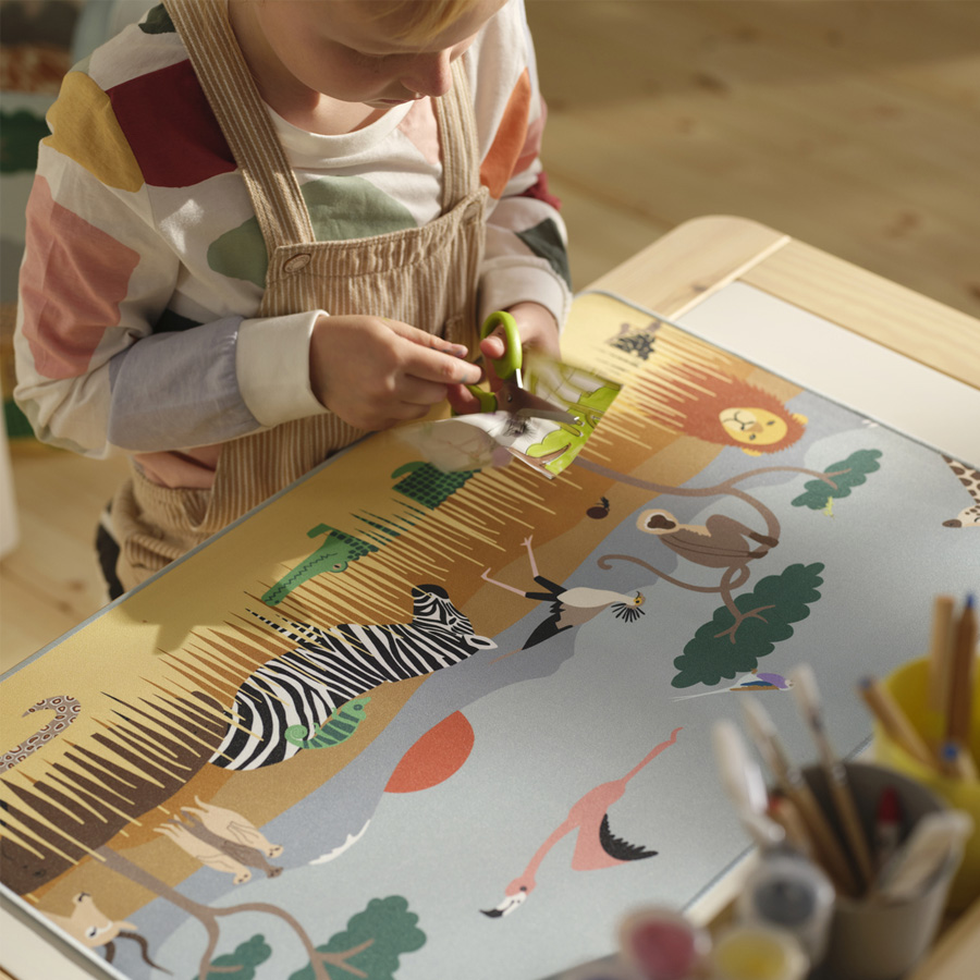 As the days grow darker and colder outside your window, why not transform your children's room into a warm and sunny savannah? With colourful textiles, cuddly soft toys and detailed illustrations by Anna Lagerström, the SANDLÖPARE collection brings you brown spots, black stripes and red suns. If you want to enhance the room even further, you can also bring the colours and shapes of the savannah onto your walls. Simply take a photo of one of the illustrations, project it on the wall, scale according to your liking and paint away.