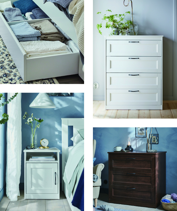 SONGESAND is a series of bedroom furniture with a beautiful classic design. It also offers a lot of storage with spacious wardrobes, clever bedside tables, chests of drawers and even storage boxes hidden under the bed, which looks great and stores everything neatly.