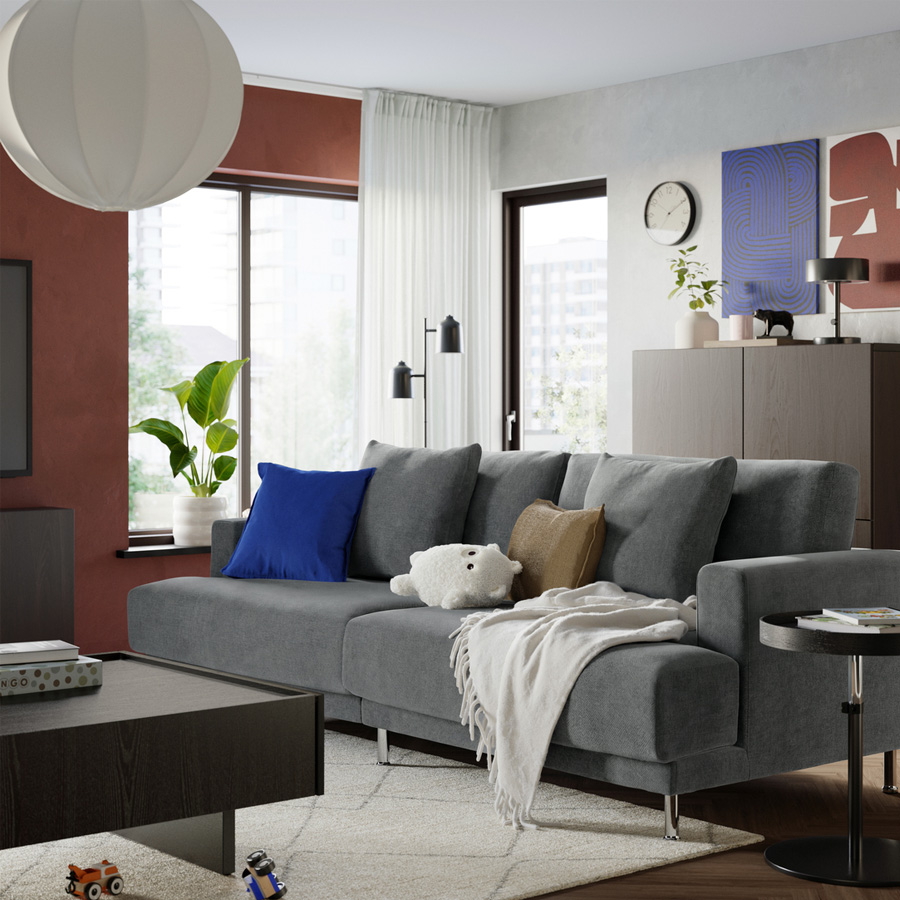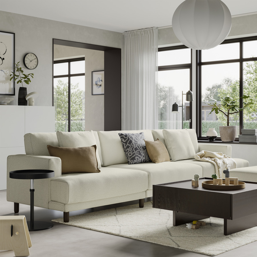 Why is UPPÅKRA seating so comfortable? It begins with springy layer-glued wood veneer slats under the oversized cushions, like the slats under the mattress in a bed. The seat cushions themselves, like many great mattresses, are made with durable pocket springs that help your sofa keep its shape and comfort, plus high resilience foam. The result? You get to enjoy years of good support and sink-in, relaxing softness.