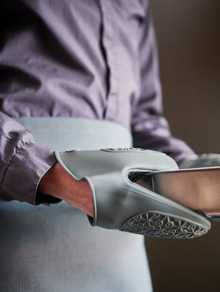 It’s often hard to remove baking dishes from the oven without dipping the tip of your oven glove in the stuff you're cooking. This means the fabric can get a bit soggy and smelly. A silicone oven glove on the other hand, won’t soak up the sauce and can be rinsed off. And if it does ever need a more thorough wash, you can just pop it in the dishwasher.