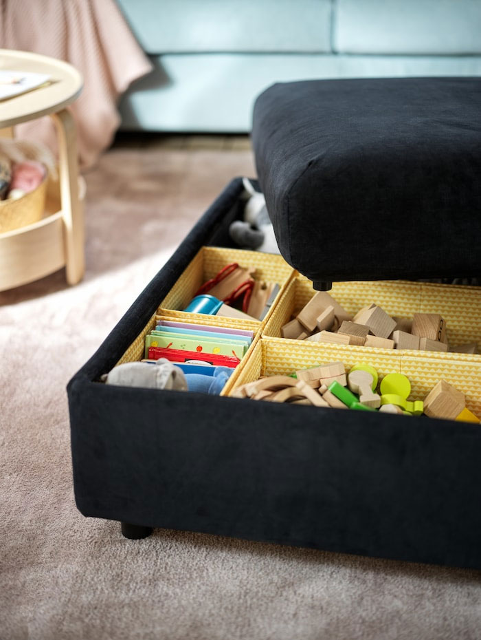 Just because you love having the kids around doesn’t mean you want the living room to look like a kindergarten. Hidden storage like this will help keep toys out of sight when they’re not being used. For extra tidiness, fit them with boxes in various sizes. Easy to lift out and easy to put away, they’ll make playtime – and tidying up – a little bit more fun.