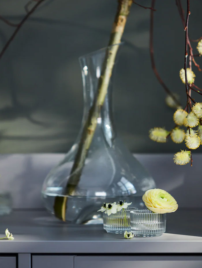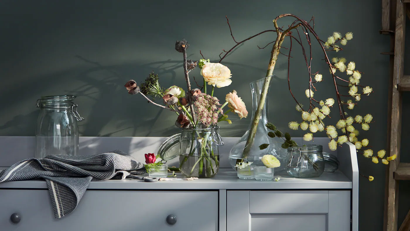 Jars, carafes, candle holders and other glassware that you already have at home can be a great starting point for a refreshing flower display. Set your creativity free with your favourite picks from outside or the florist.