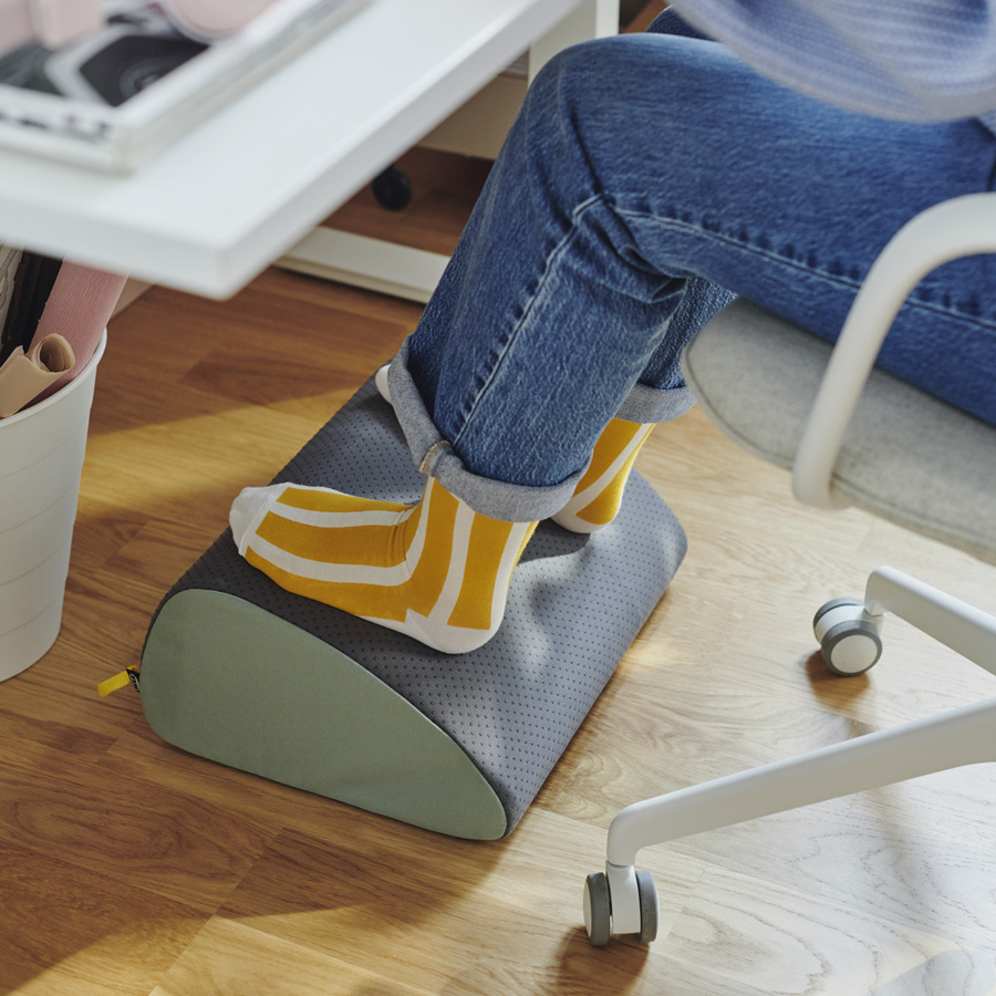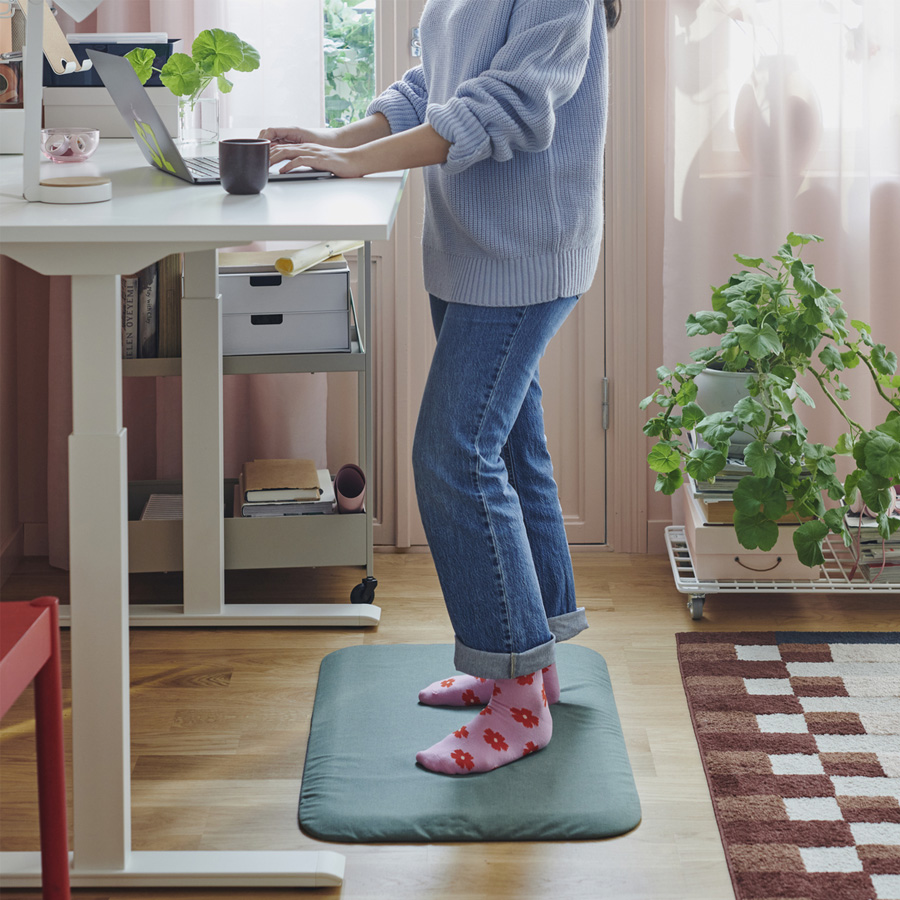 Standing up at your desk for parts of the day is good for your body, including your circulation. A thick FREIVID standing mat with a machine-washable cover makes it more comfortable. While putting your feet up on a DAGOTTO footrest can help you sit in a good position and reduce strain on your body. And you can use this ÖVNING multifunctional ergonomic footrest to support your lumbar region, knees and ankles, too.