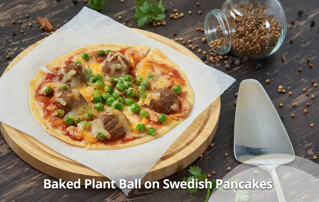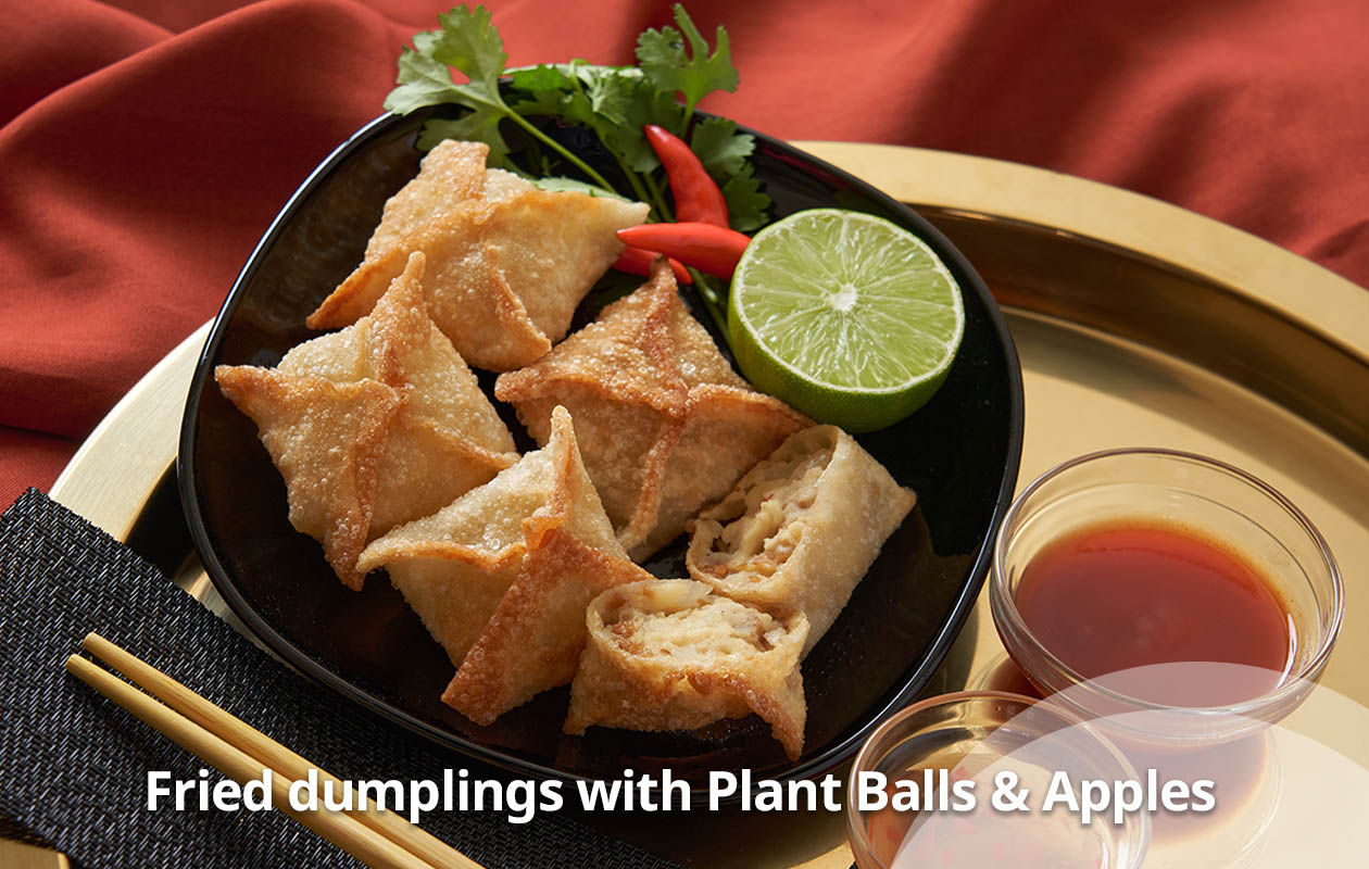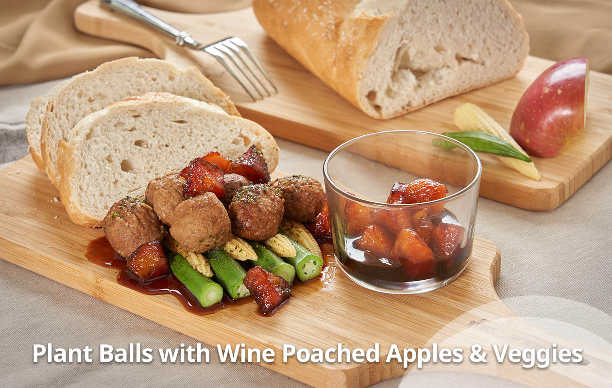 A seasonal vegan dish featuring sweet apples harvested in late autumn and IKEA plant balls, filling every bite with the savoury sweetness and a hint of acidity.