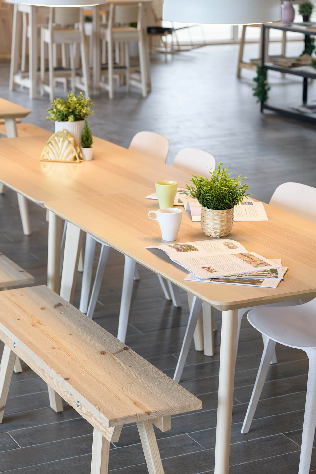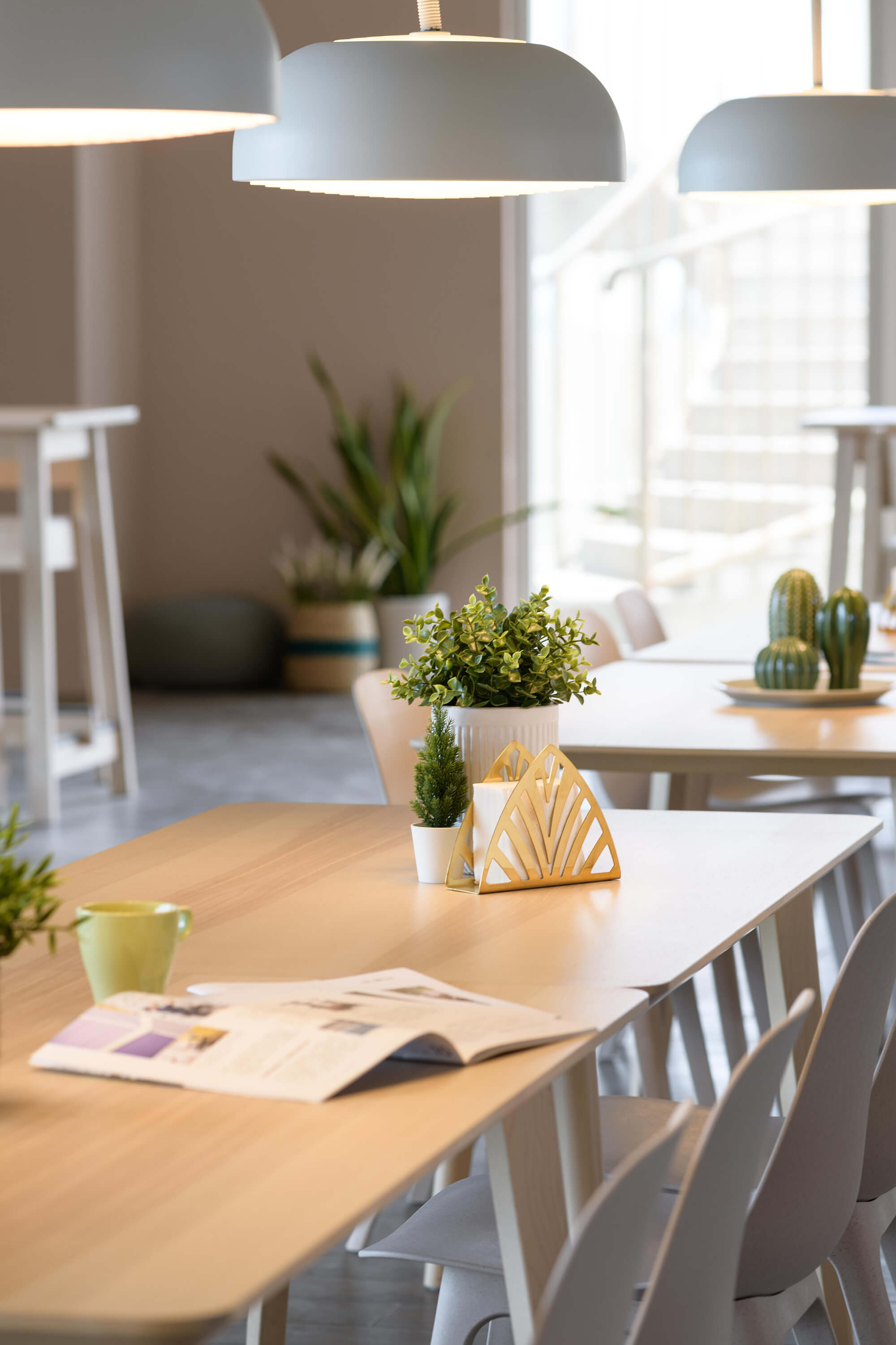 This project aims todesign an employee restaurant in the new factory. The owner wants to plan a good place for employees to eat and rest, and for their CEO to host international VIPs. We use lighting design and an array of decorative lightings to create a comfy and café-like atmosphere in the factory.