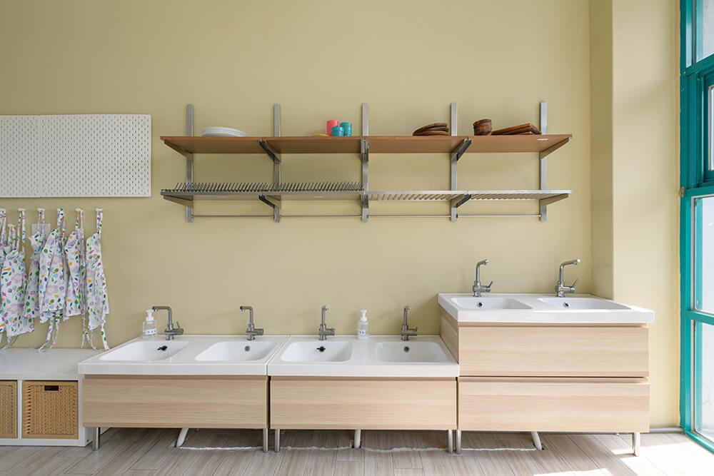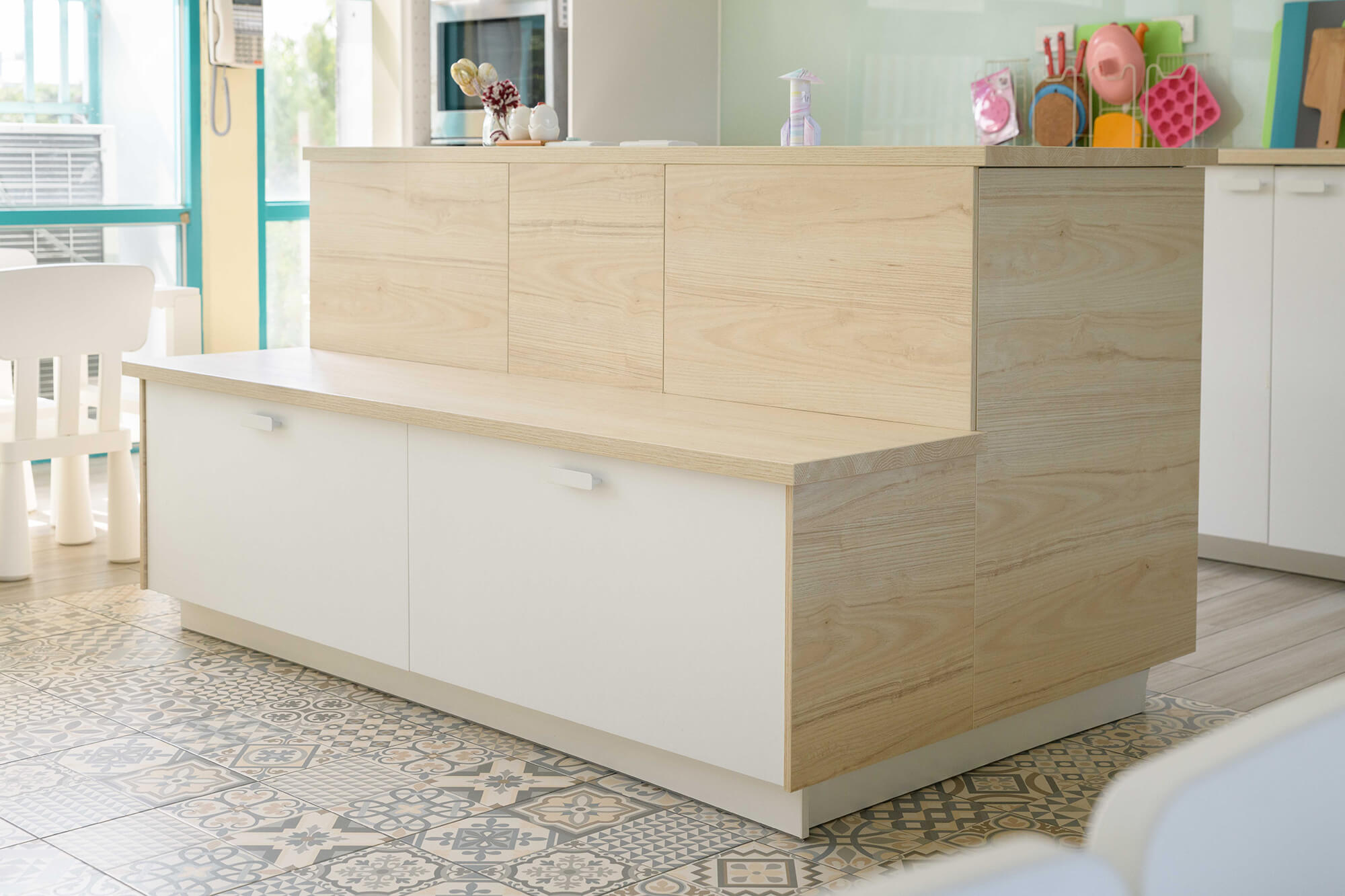 1. Space planning requirement: Teacher-student interactive cooking classroom and children’s playroom 2. This project is designed to meet children's habits, which means the designing concept of all features aims to adapt the needs of preschoolers who are between 3 and 5 years old. During the designing process, our designers often squat down envisage how children will actually see the world from their heights. The cooking area is using METOD kitchen semi-modules that not only allow teachers and children to share the same kitchen island with two heights, METOD better increases the safety since teachers can observe children’s every move closely during the cooking lessons. We create secret bases in the play area using reversible beds and mirrors for kids to have fun with their imaginations. The doors are made of lace curtains that allow light through for teachers to keep an eye on children during the classes. 3. Parents absolutely love the makeover! The owner also updated the two new makeovers in their admission promotions.