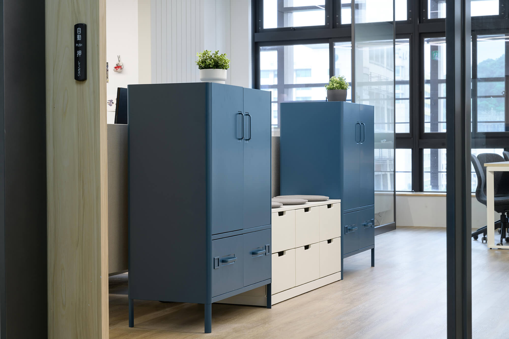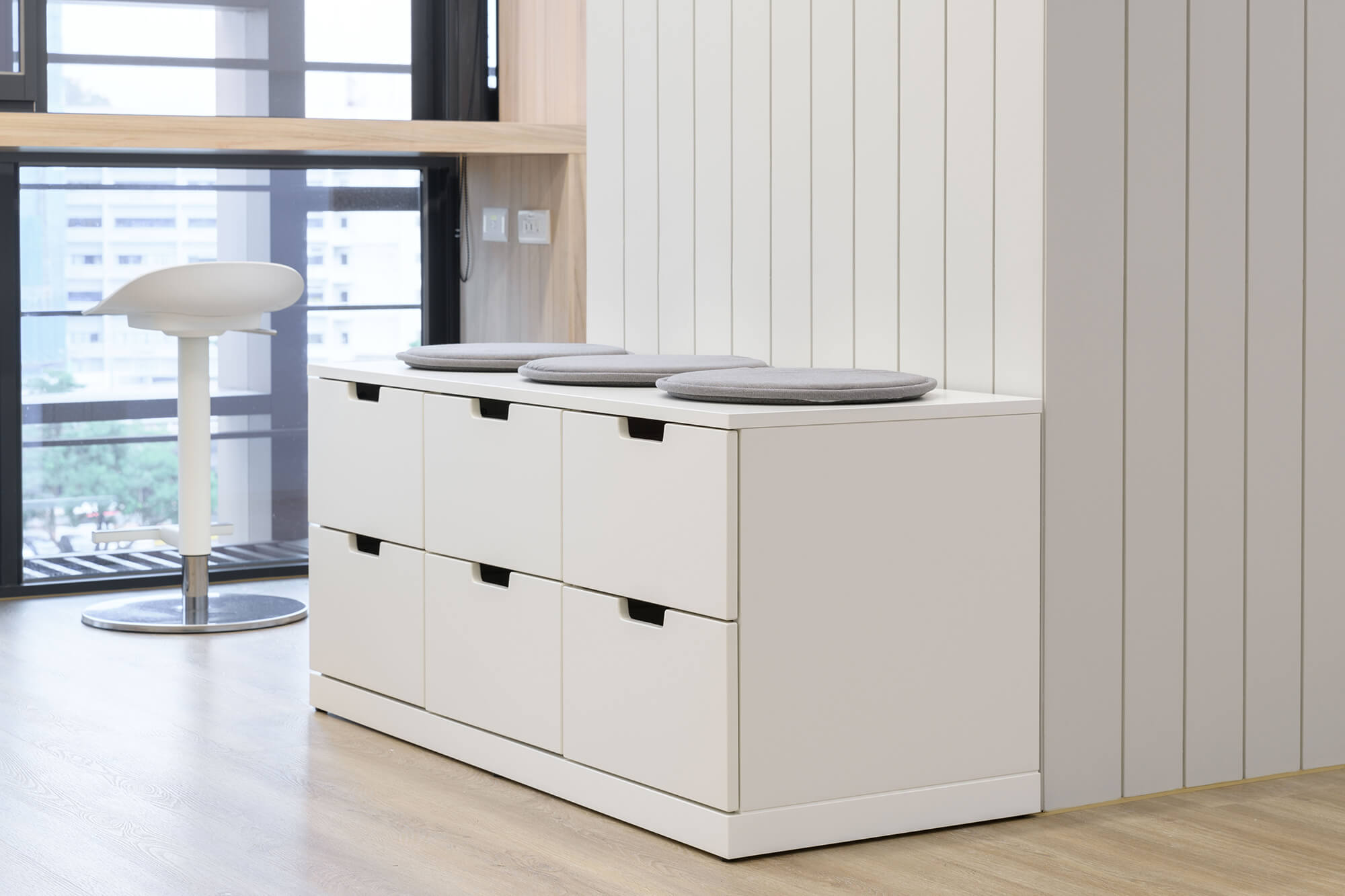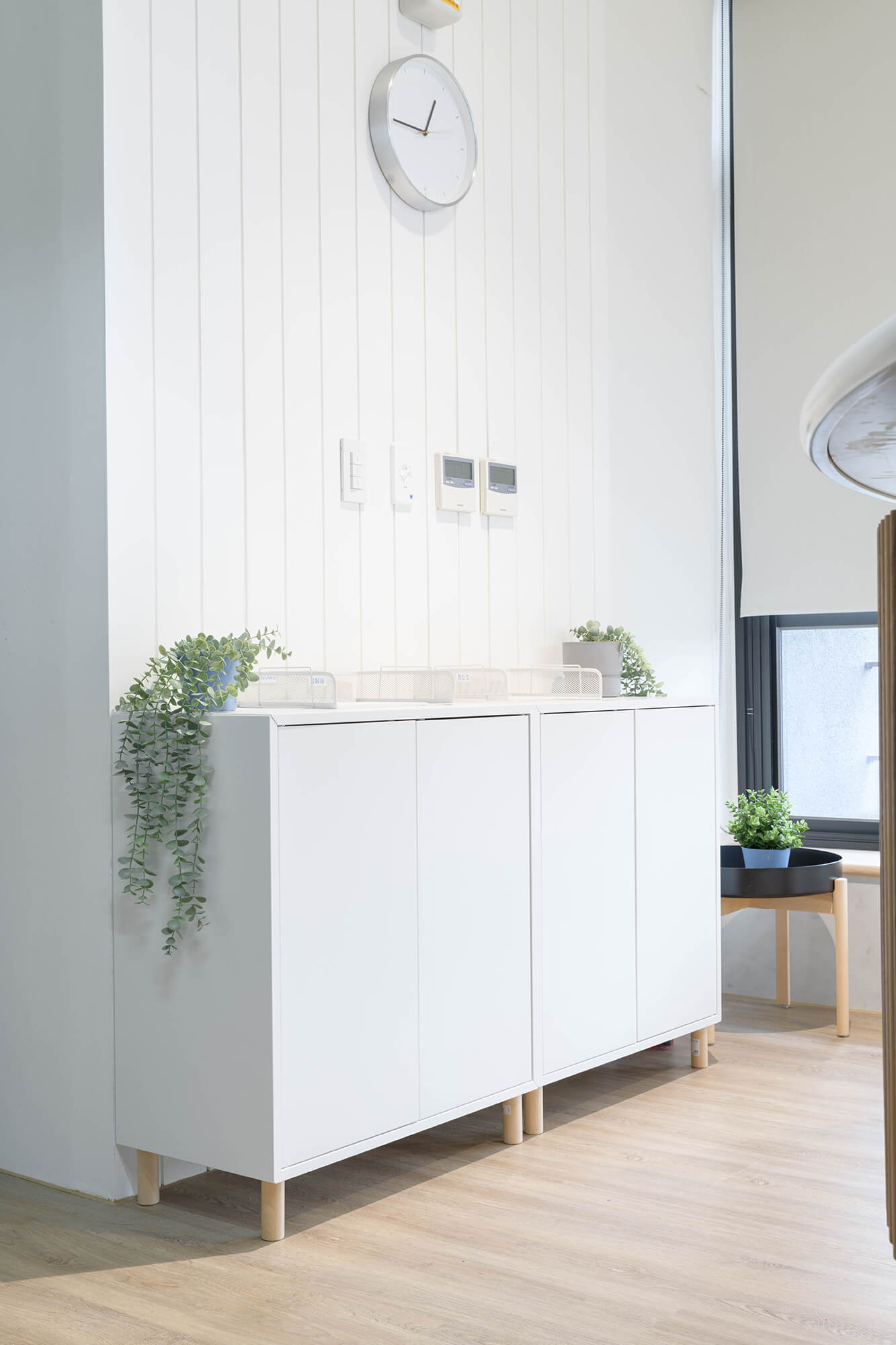 The entire design is coordinated with minimalist and white wood style to give a brand-new office environment that brings a new atmosphere to the users. The smart use of the cabinets as room dividers in an open workplace present both functionality and aesthetics of the office at the same time.