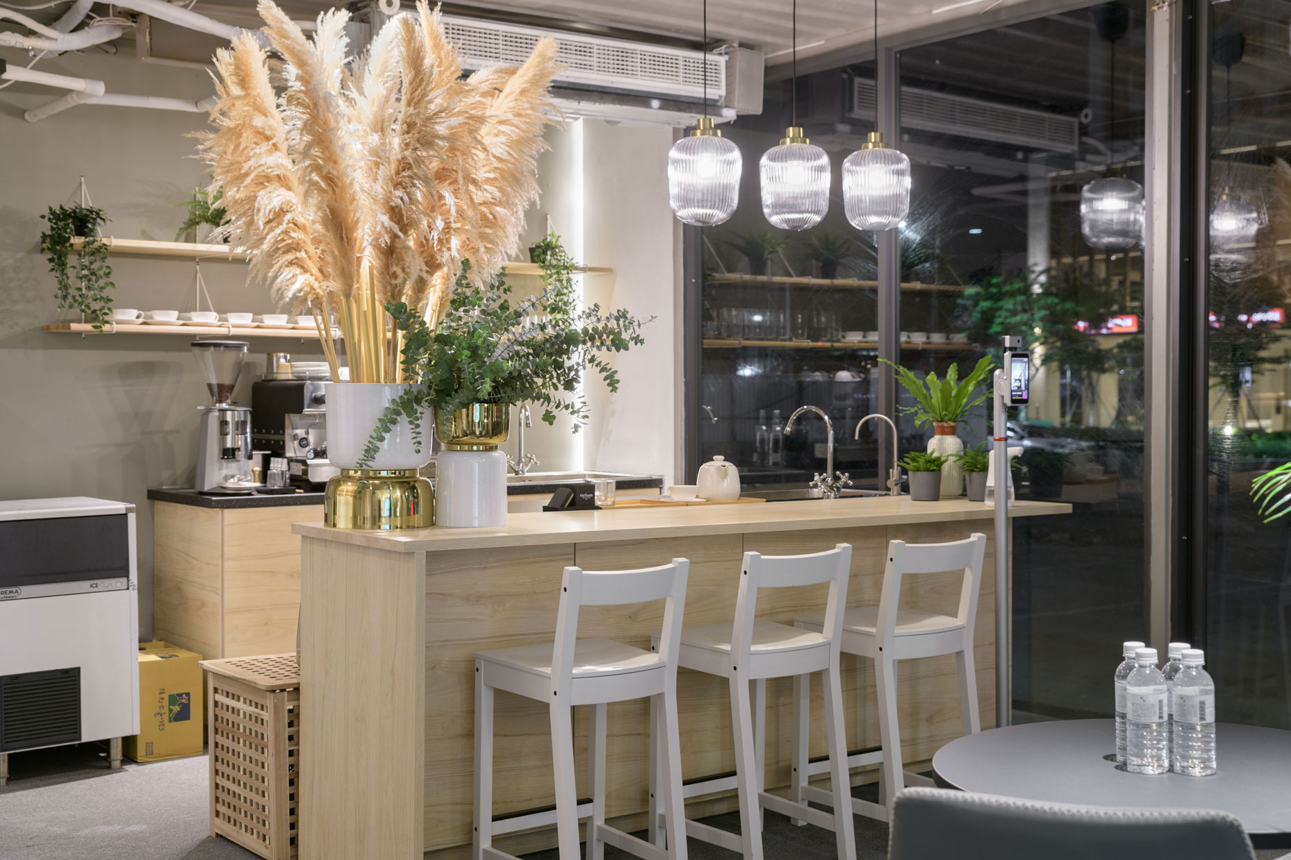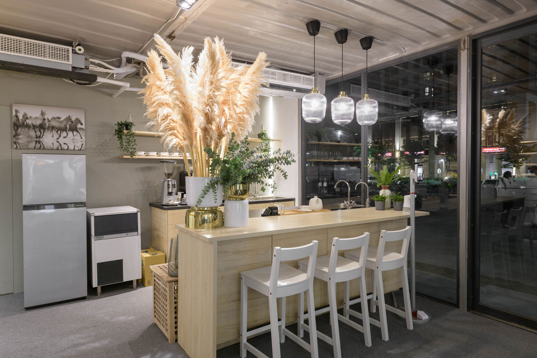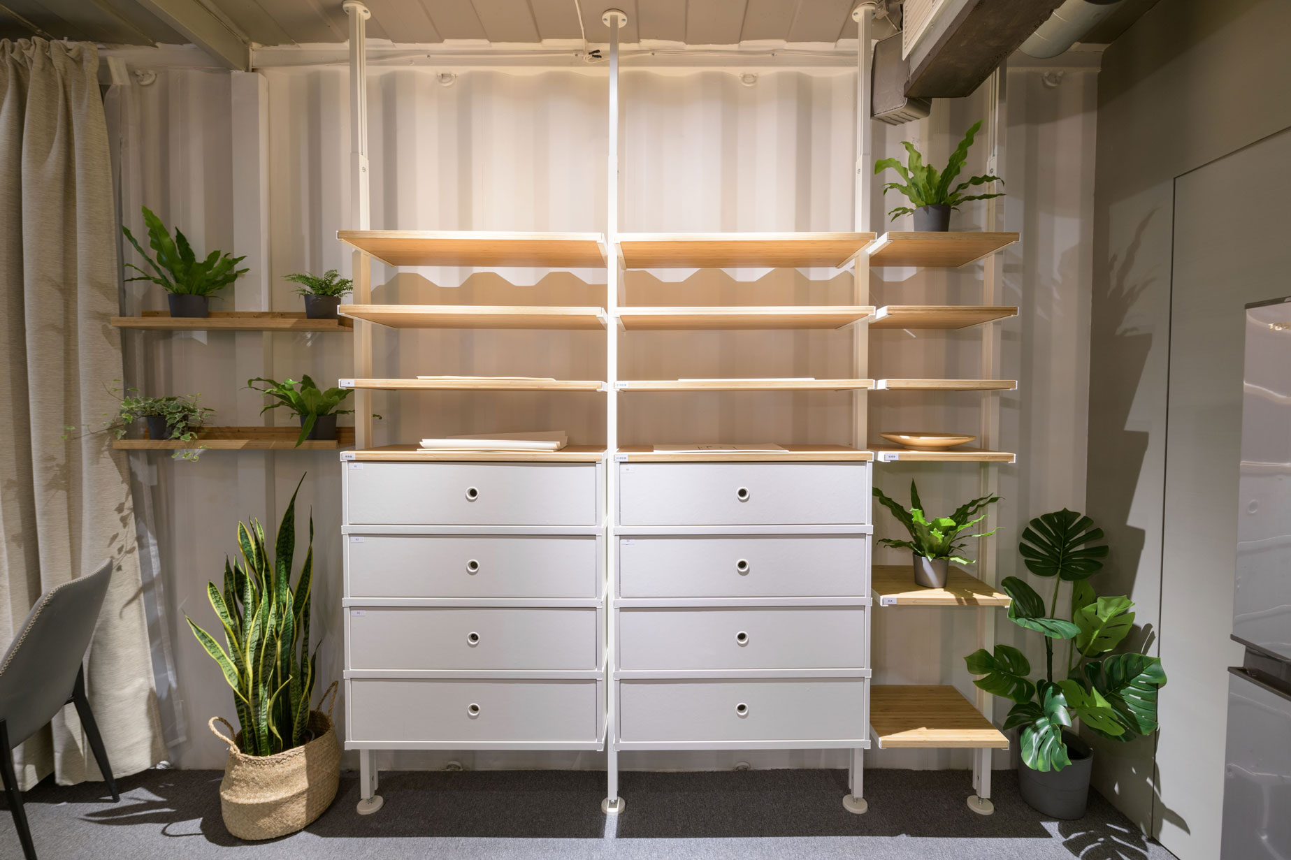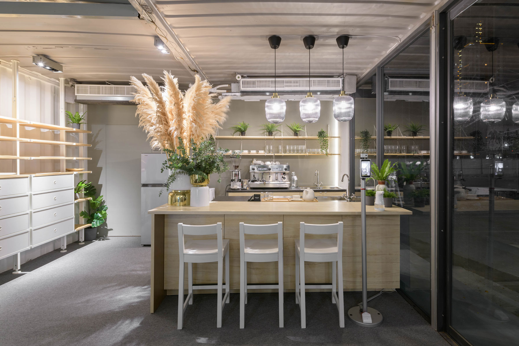 Xinzhuang Fuduxin Container House Reception Center is a warm spot in the urban jungle. The gentle tones of bamboo materials are matched with warm and bright lighting to create a soft and comfortable atmosphere. Spacious countertops are matched with black marble and wood, besides distinguishing the seating area, it makes the space more layered. In addition, container house can be recycled and reused to help reduce environmental burdens and realize the vision of a circular economy.