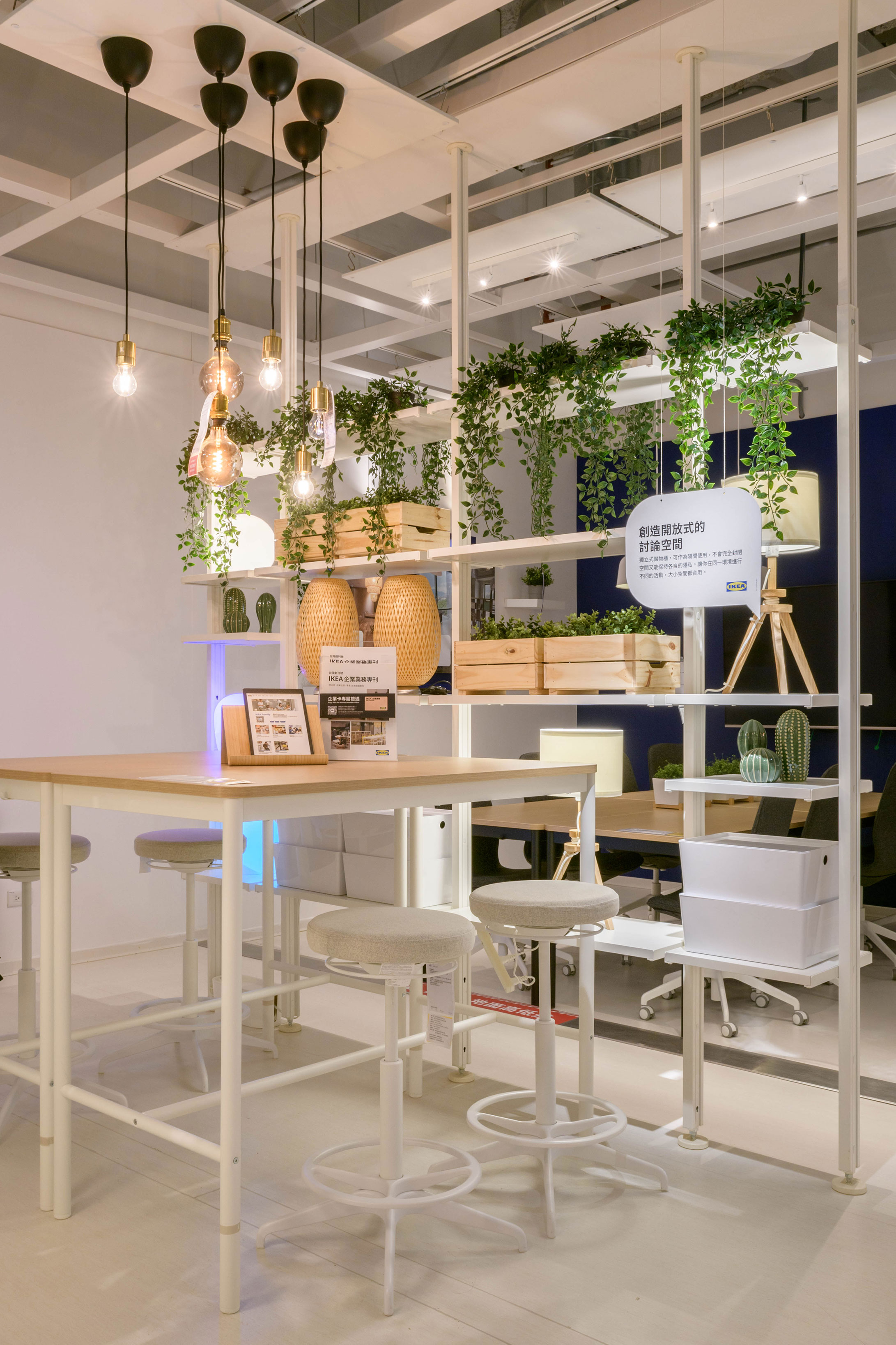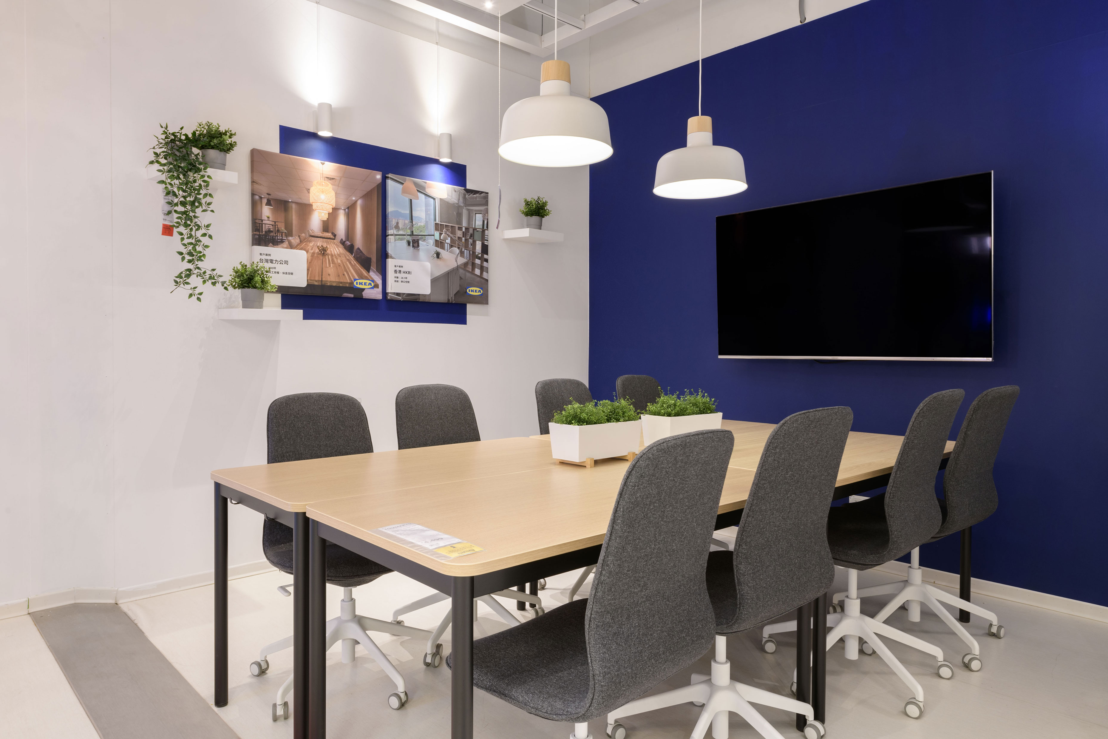 The former IKEA for Business Point showed an ideal office environment. Every detail in the reception area, communal workspace, pantry, meeting rooms, and office space was meticulously designed for practicality. Height-adjustable desks and conference tables with wheels added flexibility to the limited space. With quality certified for commercial use and 10-year quality guarantee, this space exemplified flexibility in business settings, creating an office environment that seamlessly combines efficiency and comfort.