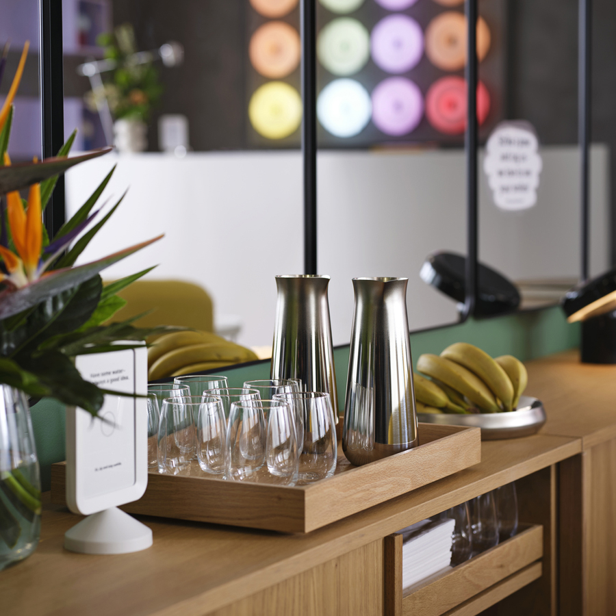 Want your small hotel to stand out? Consider it done. A hotel lounge design like this one grabs attention and helps get rave reviews. How? It starts with bold, eye-catching statement pieces and a clear theme that shows off the brand. Then it uses repetition, restriction and thoughtful details that create approachable, effortless guest experiences.