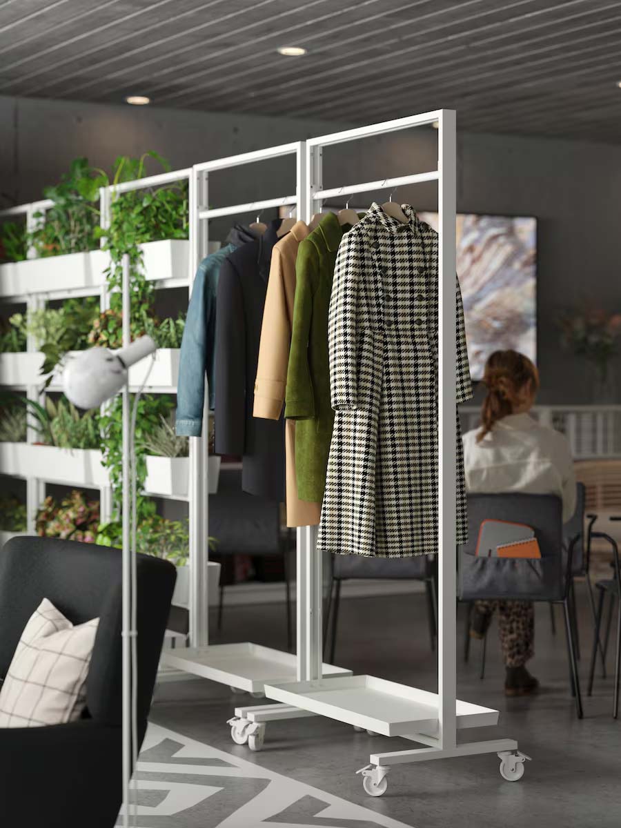 Outside, the busy street hums, yet inside, tranquility prevails. Simple wooden furniture adds warmth to concrete interiors. Greenery abounds, with potted plants and grassy windowsills, bringing life and a soothing vibe. This spot, where nature meets the urban, is ideal for a serene meal break.