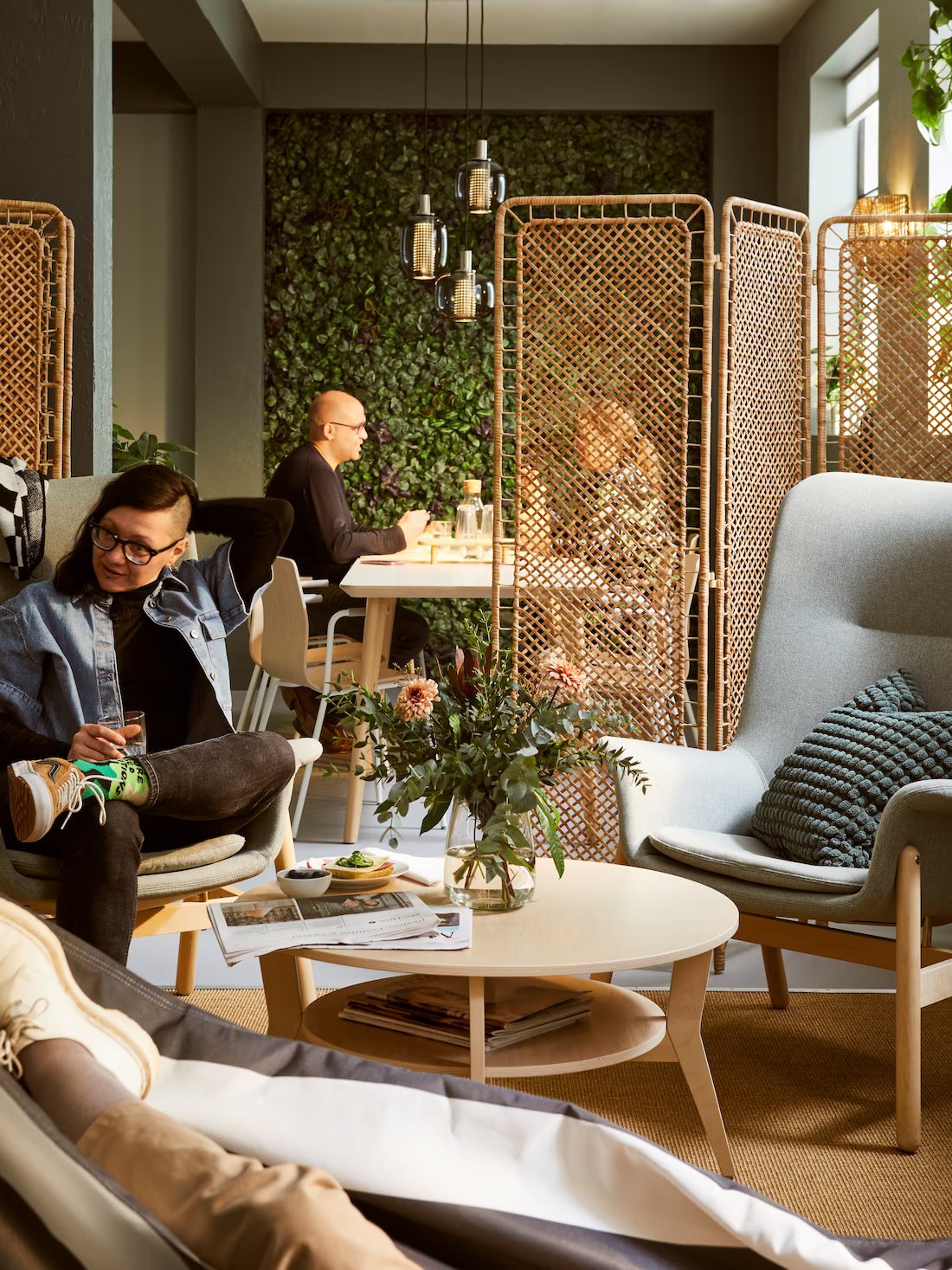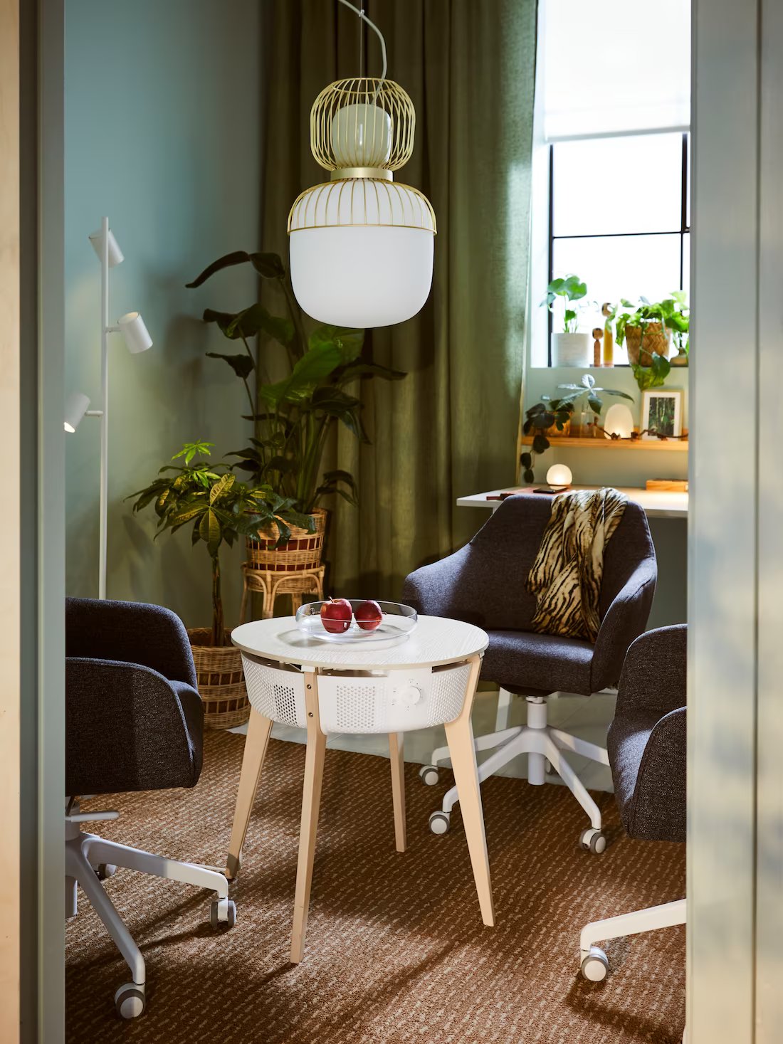 Meeting spaces may be a must, but how they look is an open question. Aim to create a room that makes people feel at ease, then go from there. Comfy seating and potted plants. Textiles, adjustable lighting and an air purifier. A place for the best type of gathering – short, productive, energising.