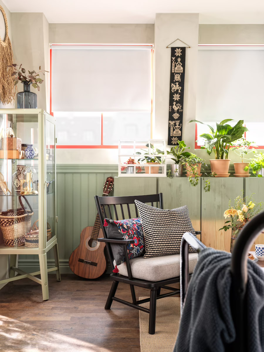 Bed linen and cushions on the daybed are a great chance to show your personal style. Here they have different textures, patterns, and colours which are mixed and matched in a bold, edgy way. So they enhance the classic look but in a dynamic way with a vibrant rhythm.
