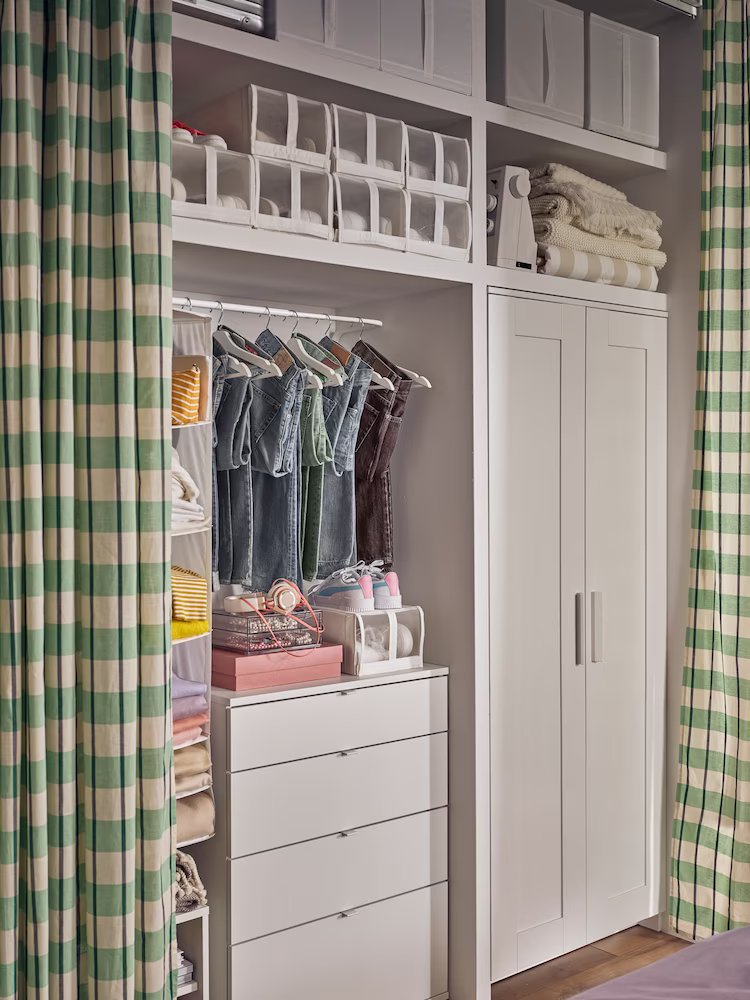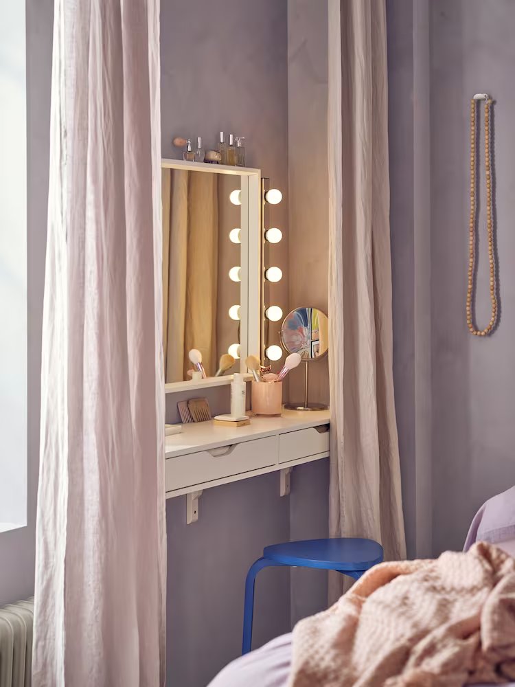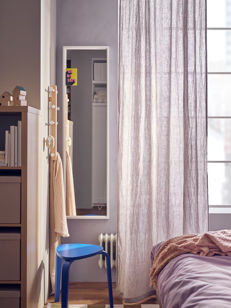 With its daring mix of colour and graphic patterns set against a lilac backdrop, this fun, anything-goes bedroom is packed with vibrant personality. At the same time, it’s a comfort zone. That’s all down to the bed piled with cushions and the curtains softening the wall, creating a playful, cocoon feel.