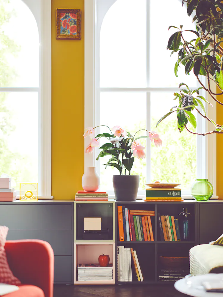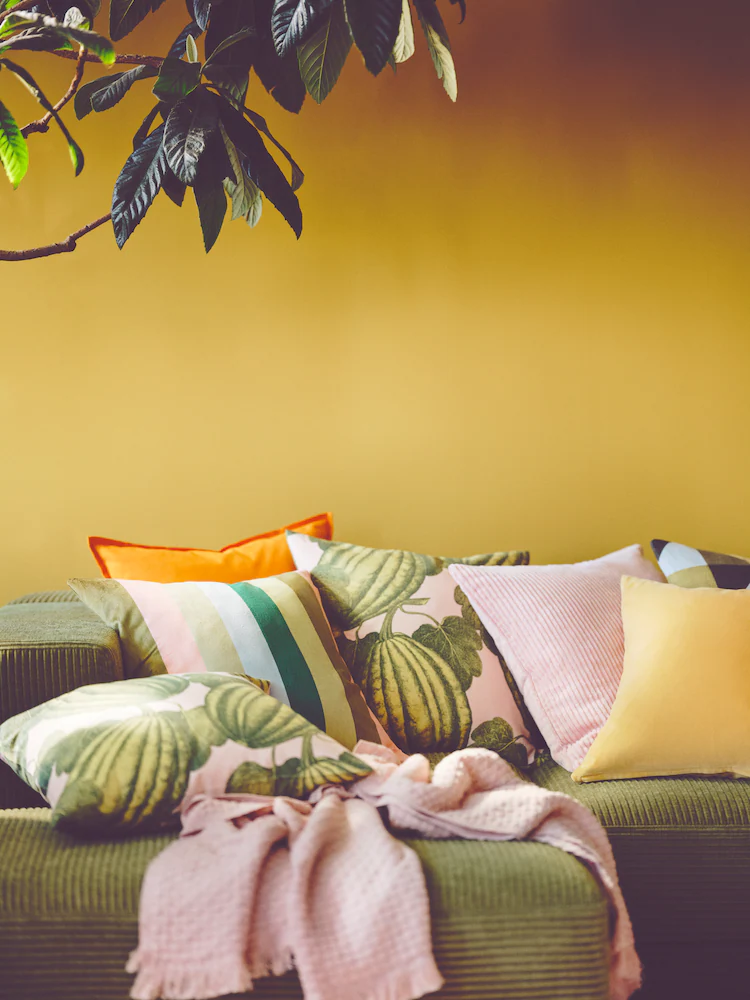 Congratulations, you’ve gone bold on your walls. Now it’s time to layer decorative accessories in a palette that makes you smile. Try a bright red wall clock, ombre glassware or an array of cushions in colourful patterns. The idea is to make it personal with accents that instantly brighten your home.