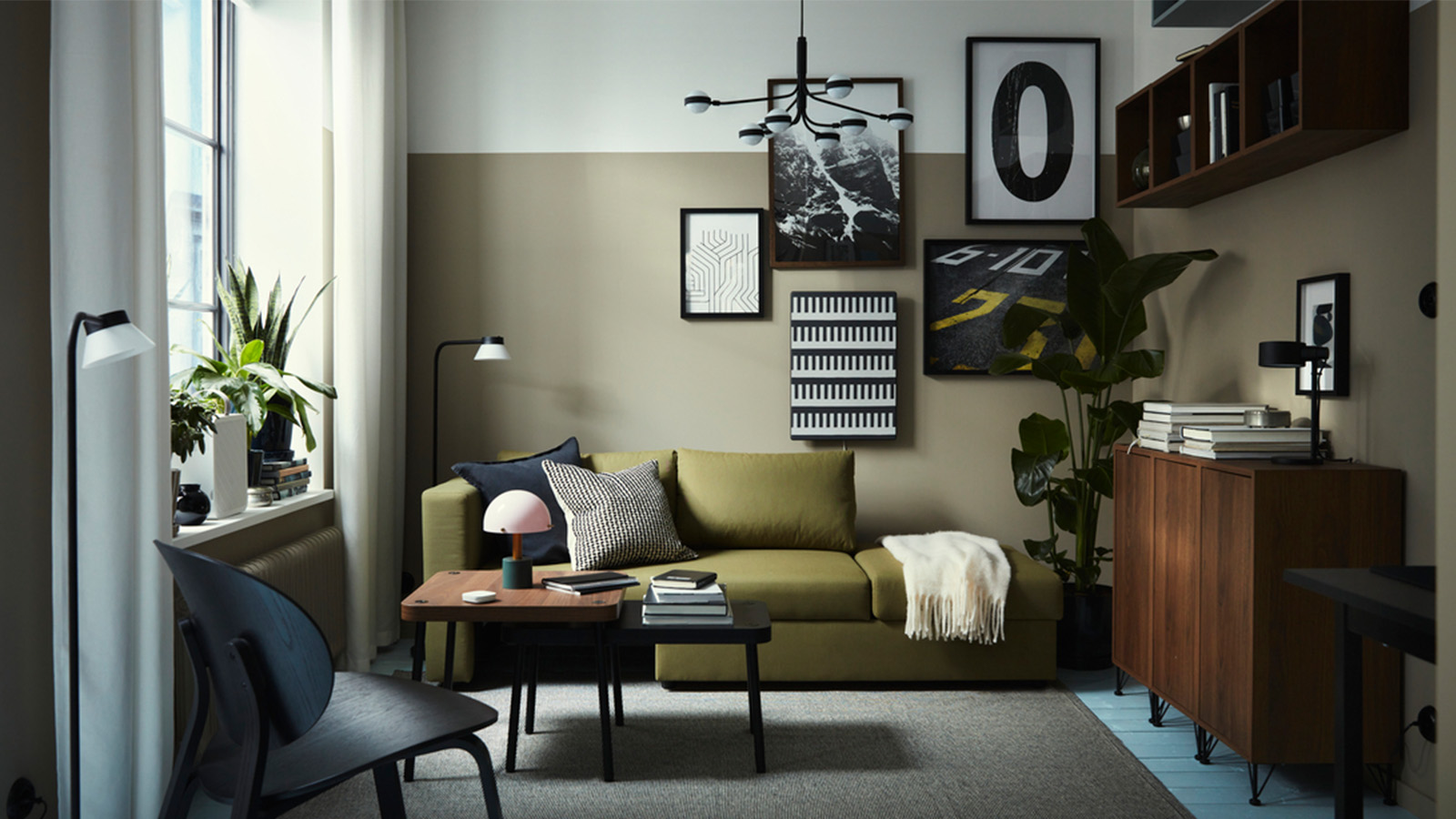 When your guest goes, the furniture can get smaller, leaving you more space. Store bedding under the seat and return the sofa-bed to 2-seat mode. You can put one nest table under the other to free up floor space. The style and the atmosphere remain, with earthy colours, natural-looking materials and clutter-busting storage helping to set the calm, comforting vibe of the room.
