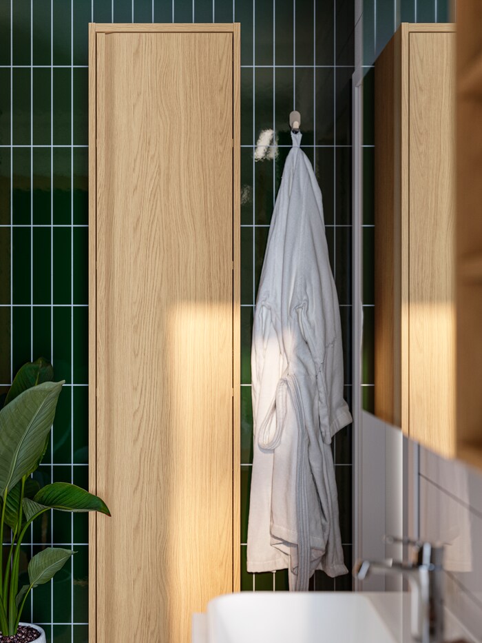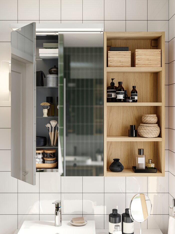 A ceiling lamp with a timeless design brings a balanced general lighting to your bathroom. Add a lamp or two for precision work, like shaving and applying makeup. With a mix of task and ambient lighting, as well as dimmable lamps, you can switch the intensity of the light to suit your purpose. A motion sensor turns it on when you enter the room.