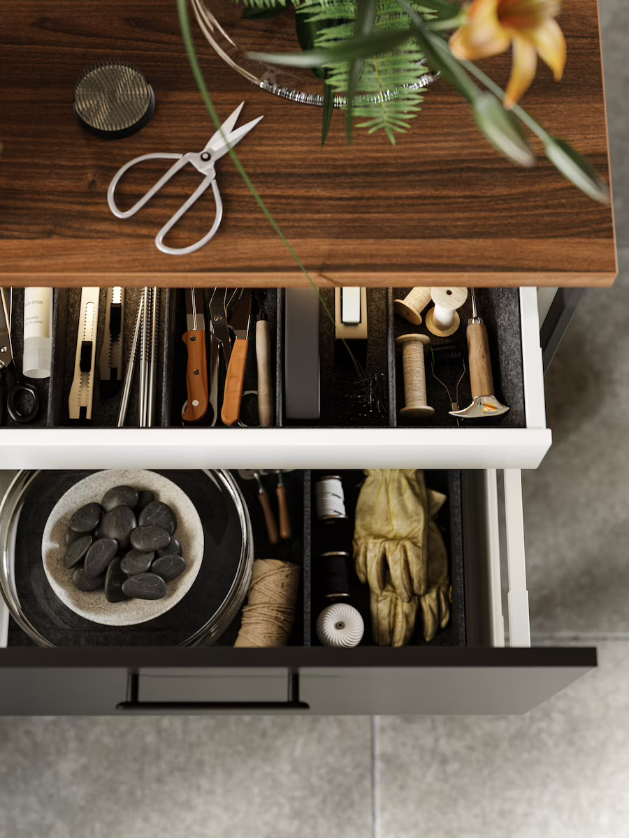 We’ve created this modern kitchen for a smaller living space, with a collaboration of dark colours, warmth and graphic patterns making it perfect for everything from daily kitchen activities to hobbies. The kitchen is clean and clutter-free, minimalist yet super functional, with plenty of storage, a natural feel and great use of space.