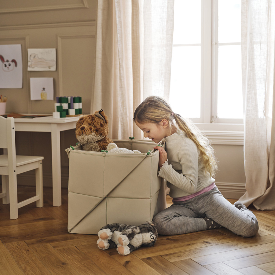 On the other side of playtime, the GREJSIMOJS mat/storage box doubles as both blanket and clean-up crew. Spread out, it’s the perfect base for an indoor picnic. Folded up, it’s a box that swallows the leftovers – plates, plushies, and everything in between. Less time tidying, more time for the next adventure.
