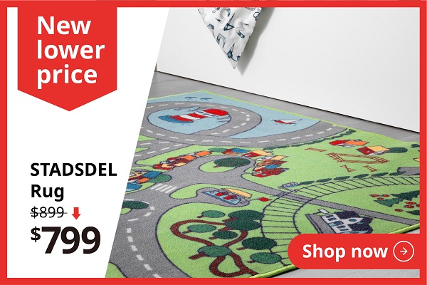 Put a gym mat on the floor for your kid to play toys and have their own Olympics. It’s comfy and keeps your kid away from hard surfaces. Easy to store away and save space since it folds flat.
