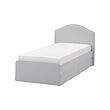 LURÖY slatted bed base with curved slats helps to absorb your body weight and supports your body, while the open construction allows air to circulate and keeps the mattress fresh.