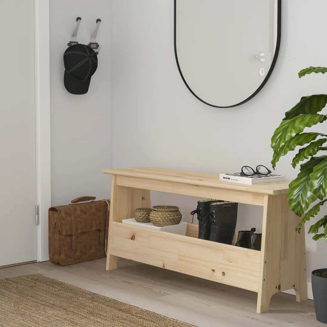 Provides comfortable seating for putting on and taking off shoes, and is suitable for storing shoes, handbags, and other items.