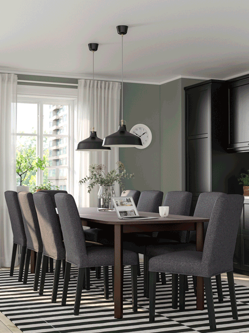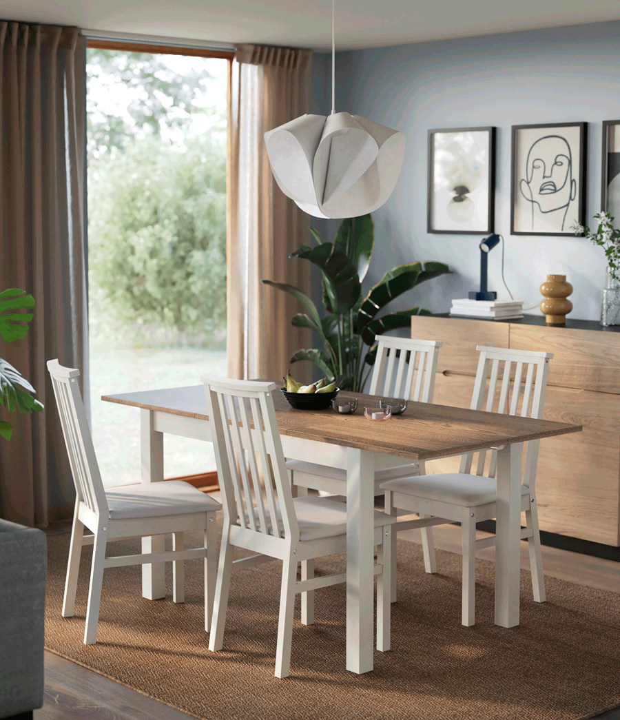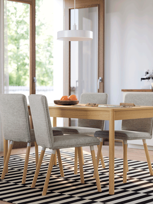 At IKEA, we make dining tables in a wide variety of sizes—for one or up to eight people—as well as features such as pull-out, extendable or gateleg tables to match your dining needs, and to make your home life more flexible than ever. We have a wide range of dining chairs for you to choose from as well, they are designed to complement your home decor.