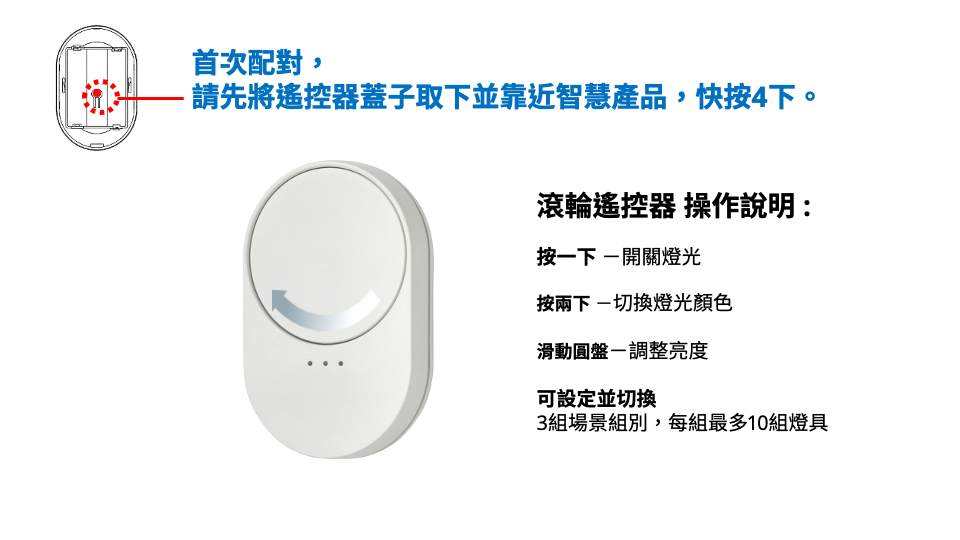 This remote control with a scroll wheel makes it easier to operate your smart products – helping you make life at home smoother, more comfortable and safer.
