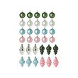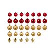 Comprises: 20 baubles (dia. 5 cm), 9 cone-shaped baubles (5 cm), 3 cone-shaped baubles (4.6 cm) and 32 ribbons (20 cm).