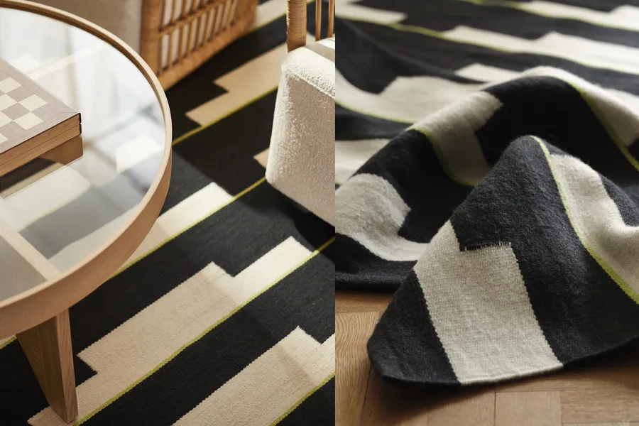 The STOCKHOLM series is a timeless tribute to Scandinavian design, with each piece showcasing meticulous craftsmanship and attention to detail. This handwoven wool rug features a geometric pattern that adds character and vibrancy to any space. Designed for durability, it is reversible, allowing you to enjoy its beauty and functionality for longer.