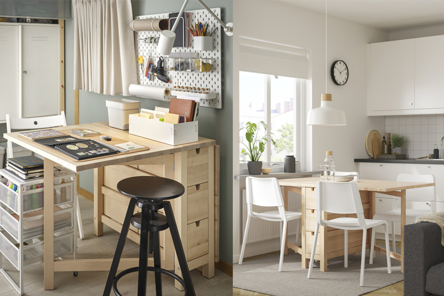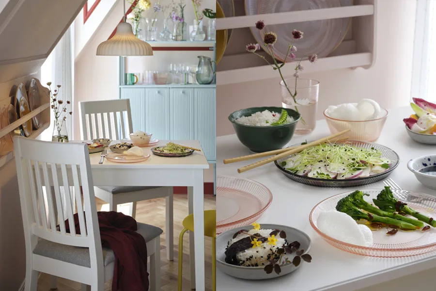 At IKEA, we make dining tables in a wide variety of sizes—for one or up to eight people—as well as features such as pull-out, extendable or gateleg tables to match your dining needs, and to make your home life more flexible than ever. We have a wide range of dining chairs for you to choose from as well, they are designed to complement your home decor.