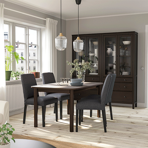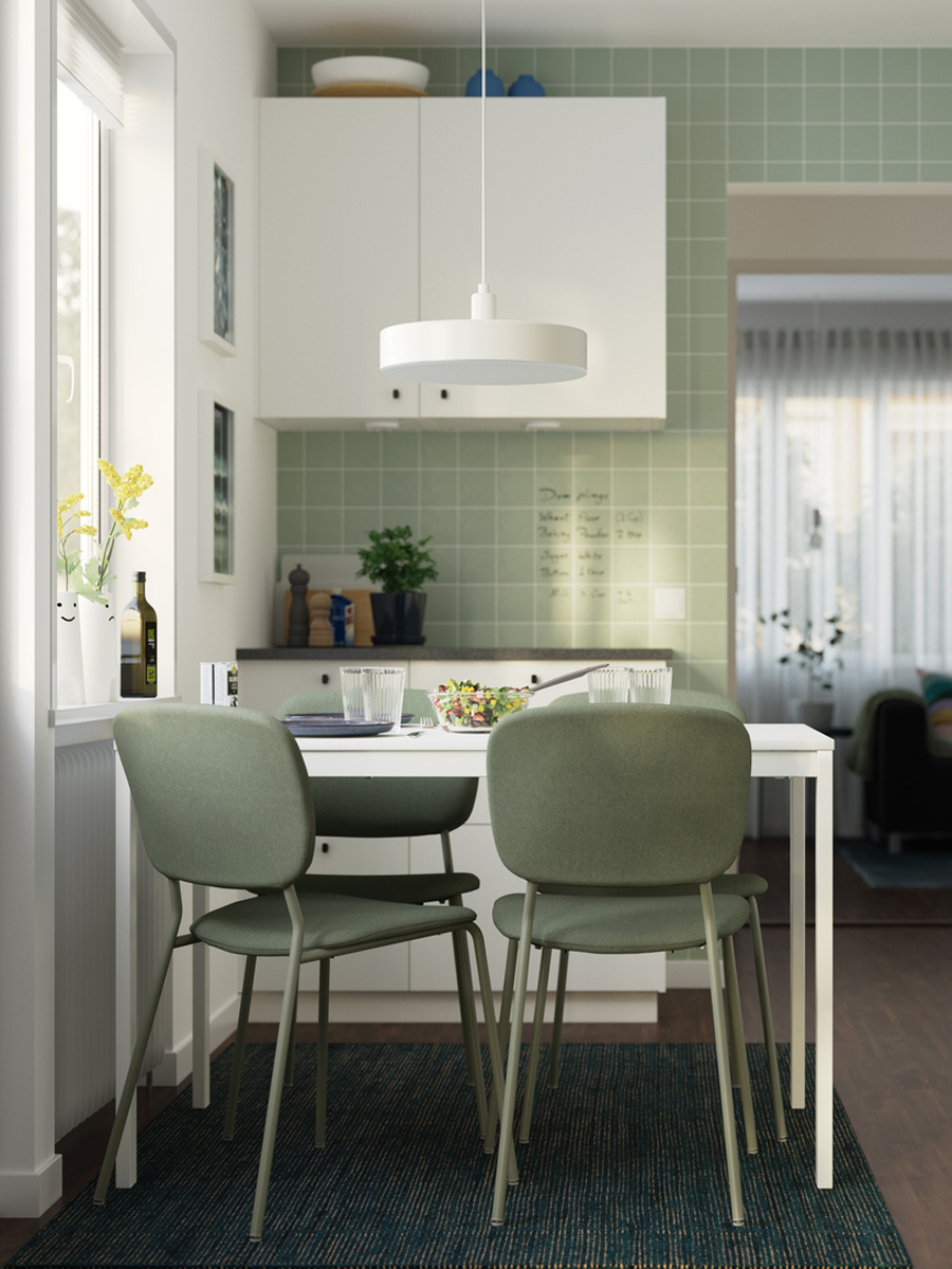 At IKEA, we make dining tables in a wide variety of sizes—for one or up to eight people—as well as features such as pull-out, extendable or gateleg tables to match your dining needs, and to make your home life more flexible than ever. We have a wide range of dining chairs for you to choose from as well, they are designed to complement your home decor.