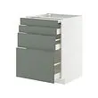 METOD series has durable hinges and drawer rails of good quality, and it's the key to make the kitchen cabinet durable. We test our kitchen doors by hanging weight on the doors and then open and shut them 200,000 times to ensure good quality. METOD comes with a 25-year guarantee.