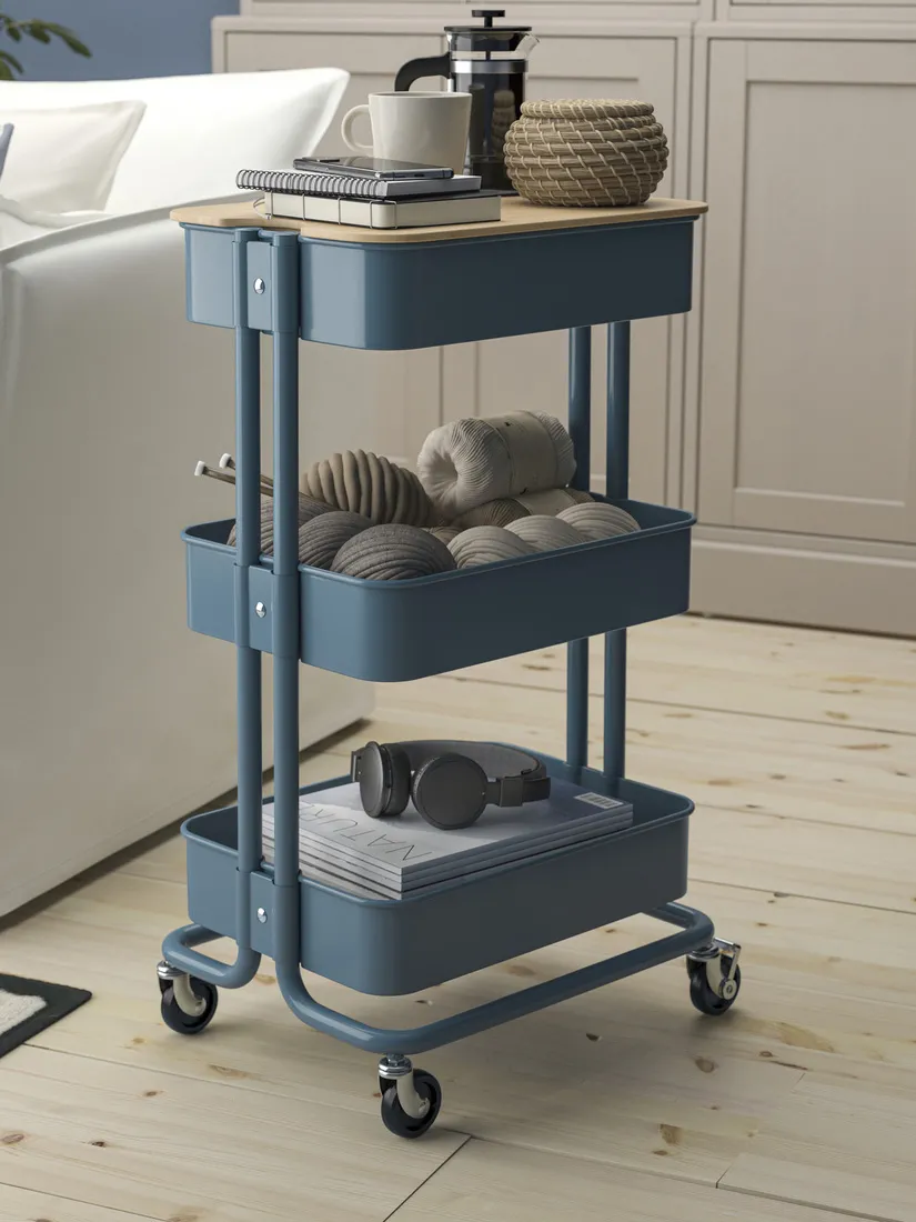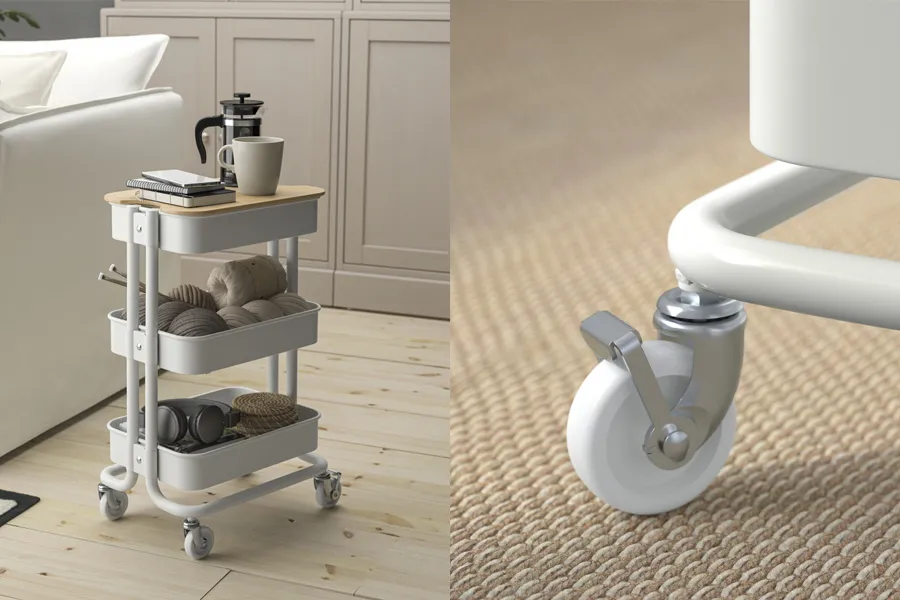 RÅSKOG Series: The most popular kitchen trolley, it has been tested against our strictest standards for stability, durability and safety to withstand everyday use in your home for years. Pair it with the NORRÅVA top cover hiding smaller items that often look messy.