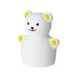 On one side of the lamp the bear's eyes are open and his ears are bright yellow, and on the other side it has closed eyes and green ears.