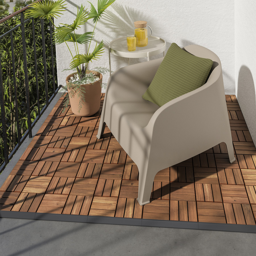 Our outdoor flooring is easy to lay and to disassemble, plus the deck boards can be cut to size to fit any corners. Once outdoor season ends, you can easily take the floor decking apart to clean the floor underneath.