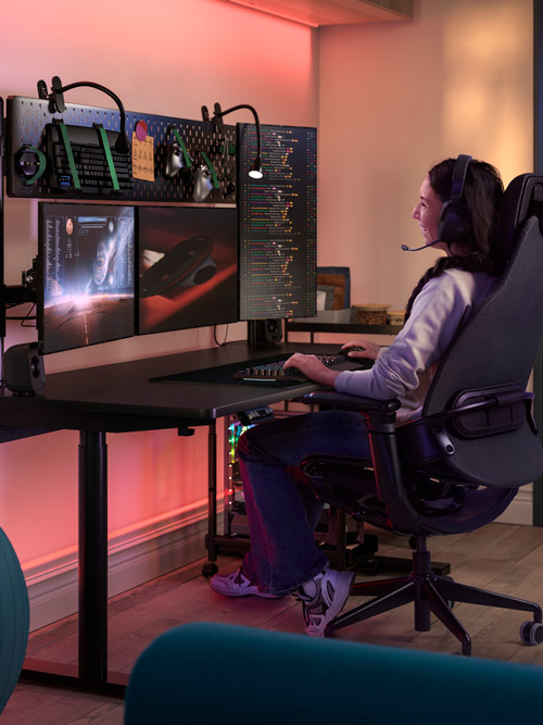 Whether you need a desk for the office, or one for your work-from-home/gaming area, a gaming desk is a fantastic choice. With nifty features such as large surfaces, adjustable heights and cable management, these desks are made for optimal performance.
