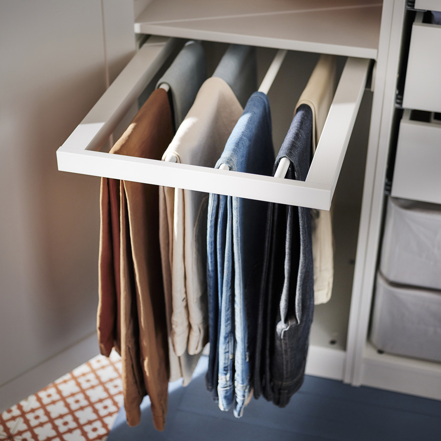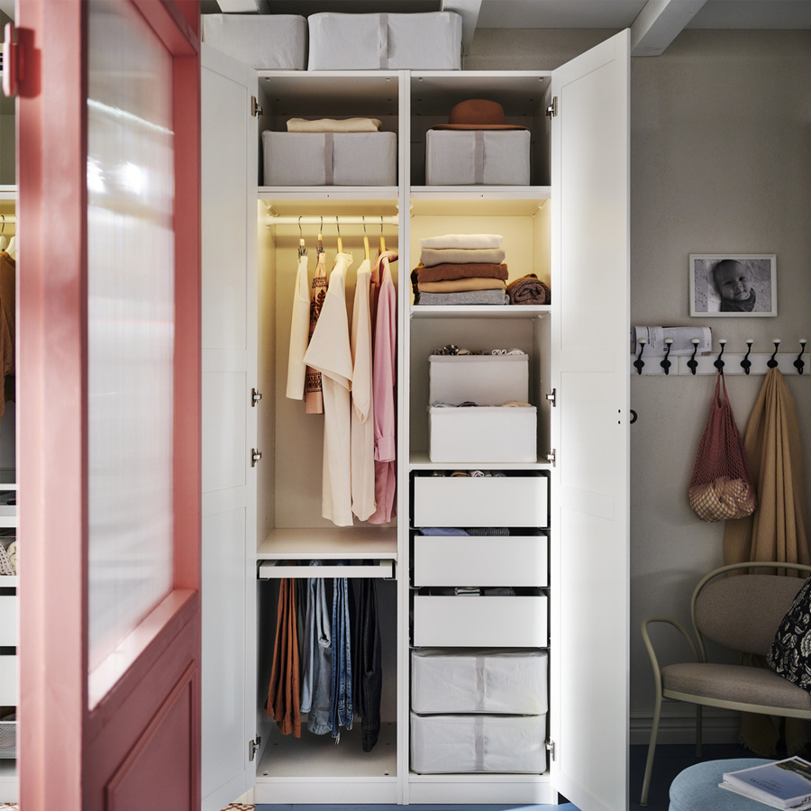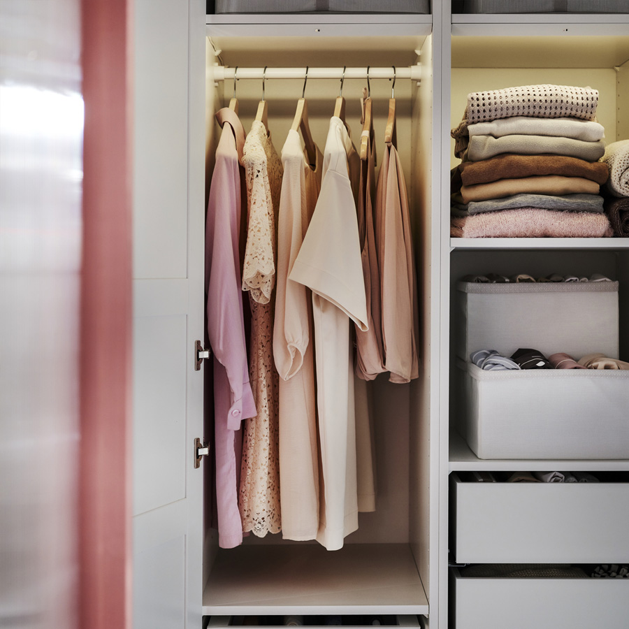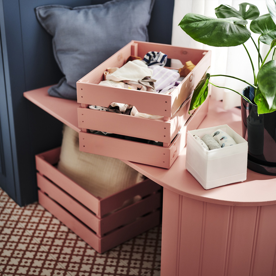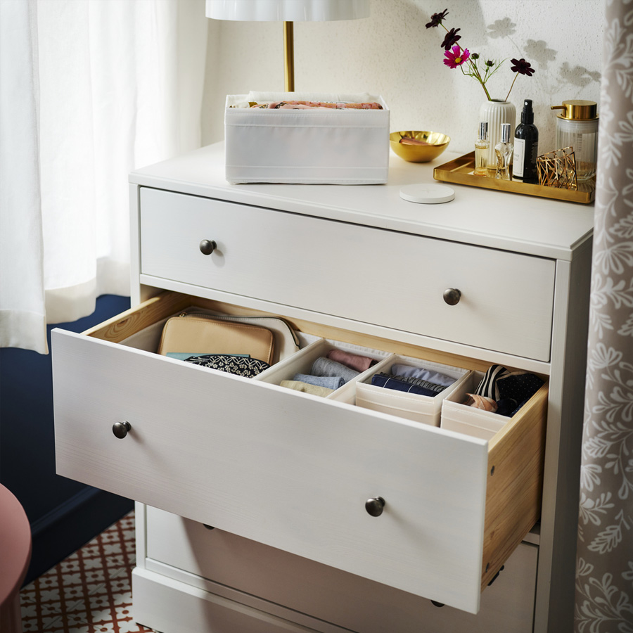 Keep your chest of drawers organised by sorting clothes by type. Store sweaters, seasonal items, or occasional wear in the larger, lower drawers, leaving the top drawers free for essentials you wear every day like underwear, socks, and accessories. Small storage solutions like SKUBB boxes make managing smaller items easier - think underwear, vests, socks, and those odd-shaped accessories you're not sure where to put. The best bit? Simply lift each box out of the drawer to find what you need, leaving the rest of the drawer neat and untouched.