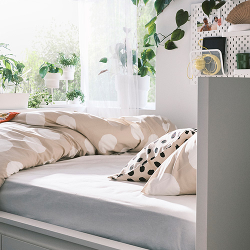 With our wide range of sizes, colours, materials and features, we’re sure there’s a just-right bed at a price you’ll love. Want to buy a bed frame, bedside table and storage pieces that match? Look for a coordinated product series such as HEMNES or one of the many bedroom furniture sets.
