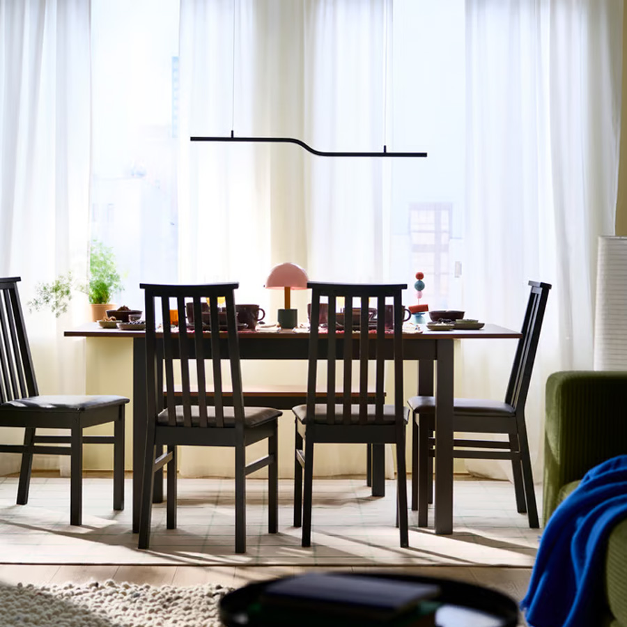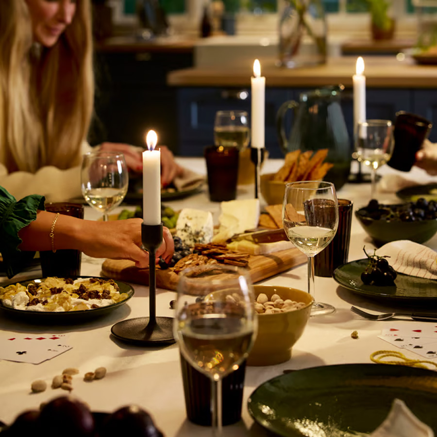 A portable LED lamp in an eye-catching design adds ambient light and can easily be move around. The only thing you may risk with this inviting table setting is that your guests will want to stick around all day.