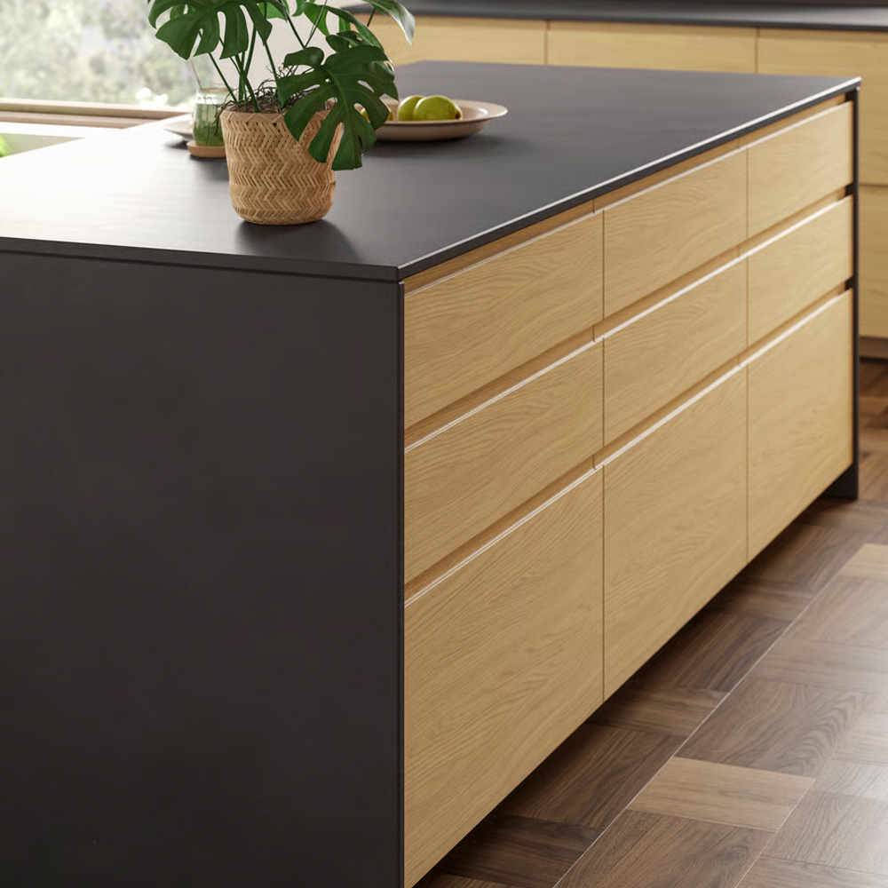 It’s important to choose the right worktop, so there are different criteria to think about such as how various materials withstand heat, stains and scratches etc. Whether you’re a budding super-chef or and a social animal who always has friends in your kitchen, demands can vary so we’ve got something for everyone. We offer worktops in a diverse range of materials, from easy-to-maintain laminate, warm and vibrant thick wood and bamboo veneer, hard-wearing high-pressure porcelain and sleek or expressive glass composite.
